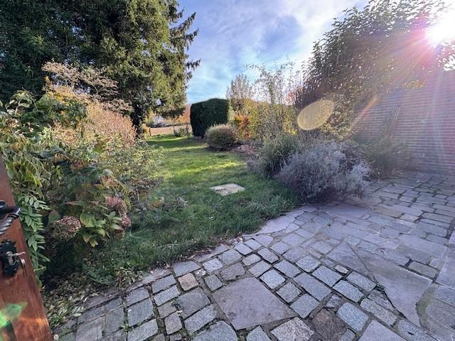 REZ Vaste living, cuisine meublée, salle de bains avec wc et bidet, joli jardin arboré