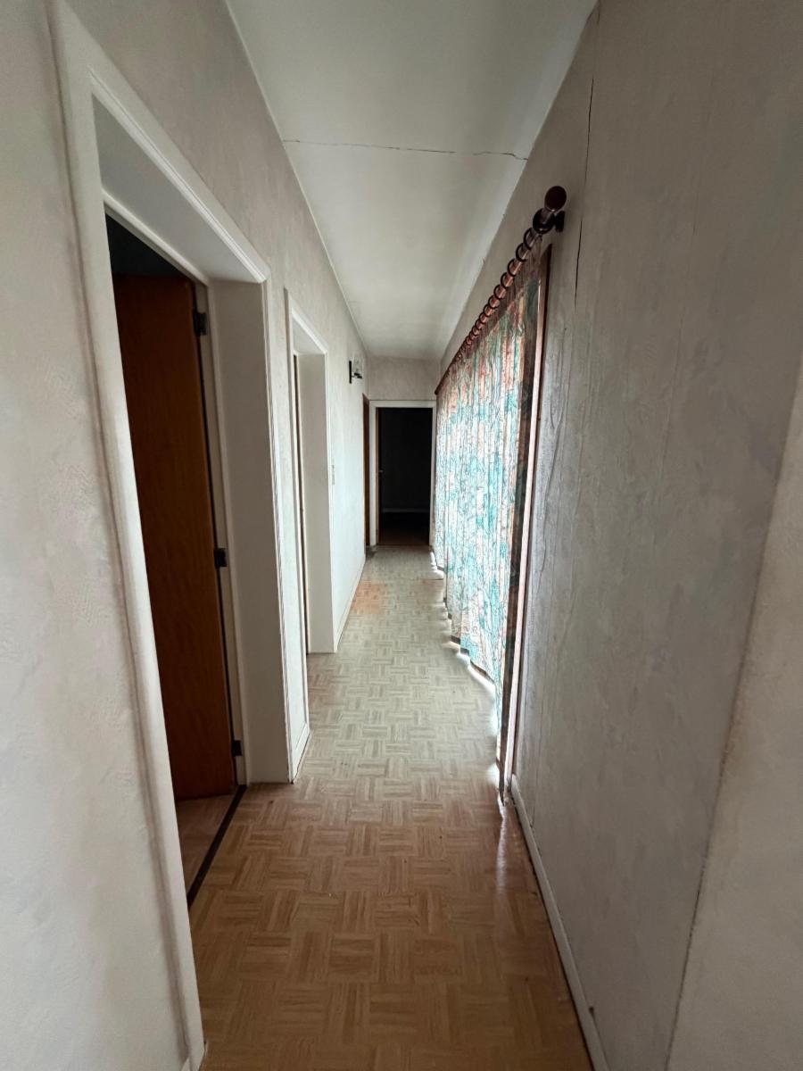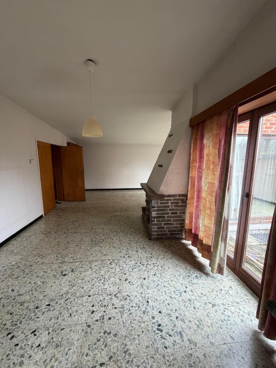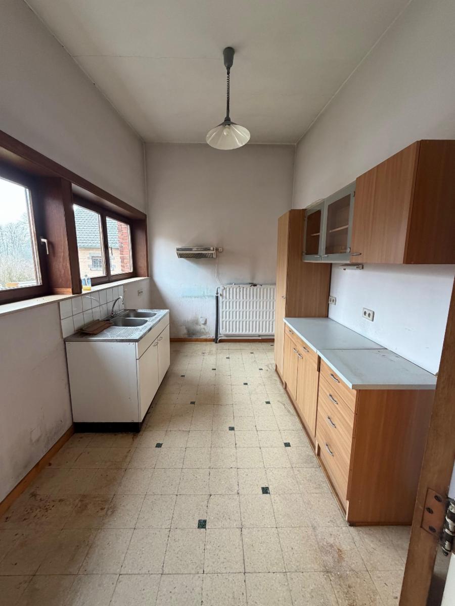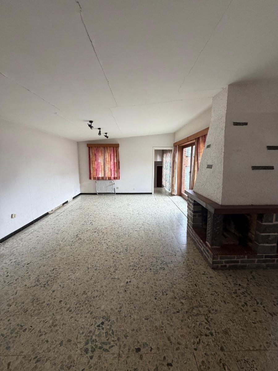 Rez : couloir, WC, 2 pièces , une cuisine non-équipée, living en L, 4 chambres, 1 salle de bain et une douche