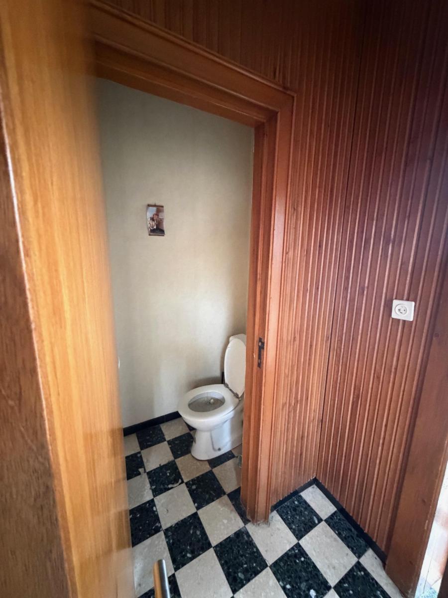 Châssis double vitrage PVC, nouveaux dans les chambres, bois à l’avant et volets (à remplacer) dans les chambres. Une vitre est brisée.