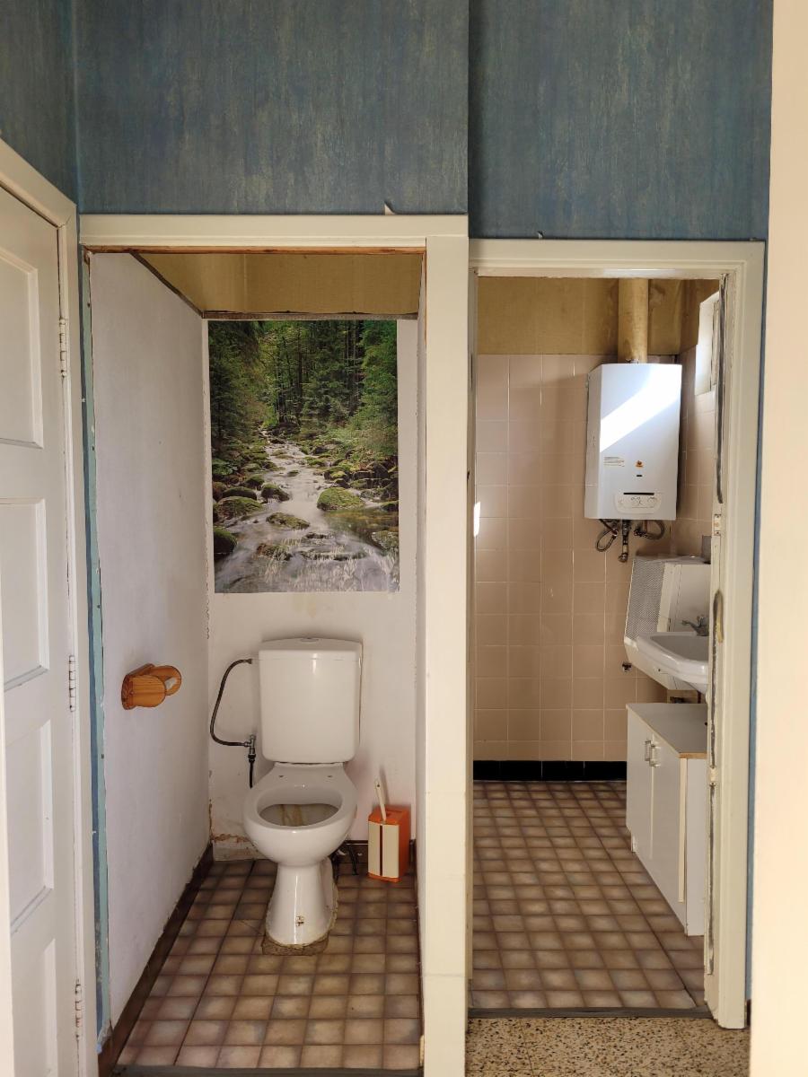 Au rez-de-chaussée : on trouve un hall d'entrée qui dessert trois chambres sur la gauche (la troisième chambre fait office de buanderie actuellement).
