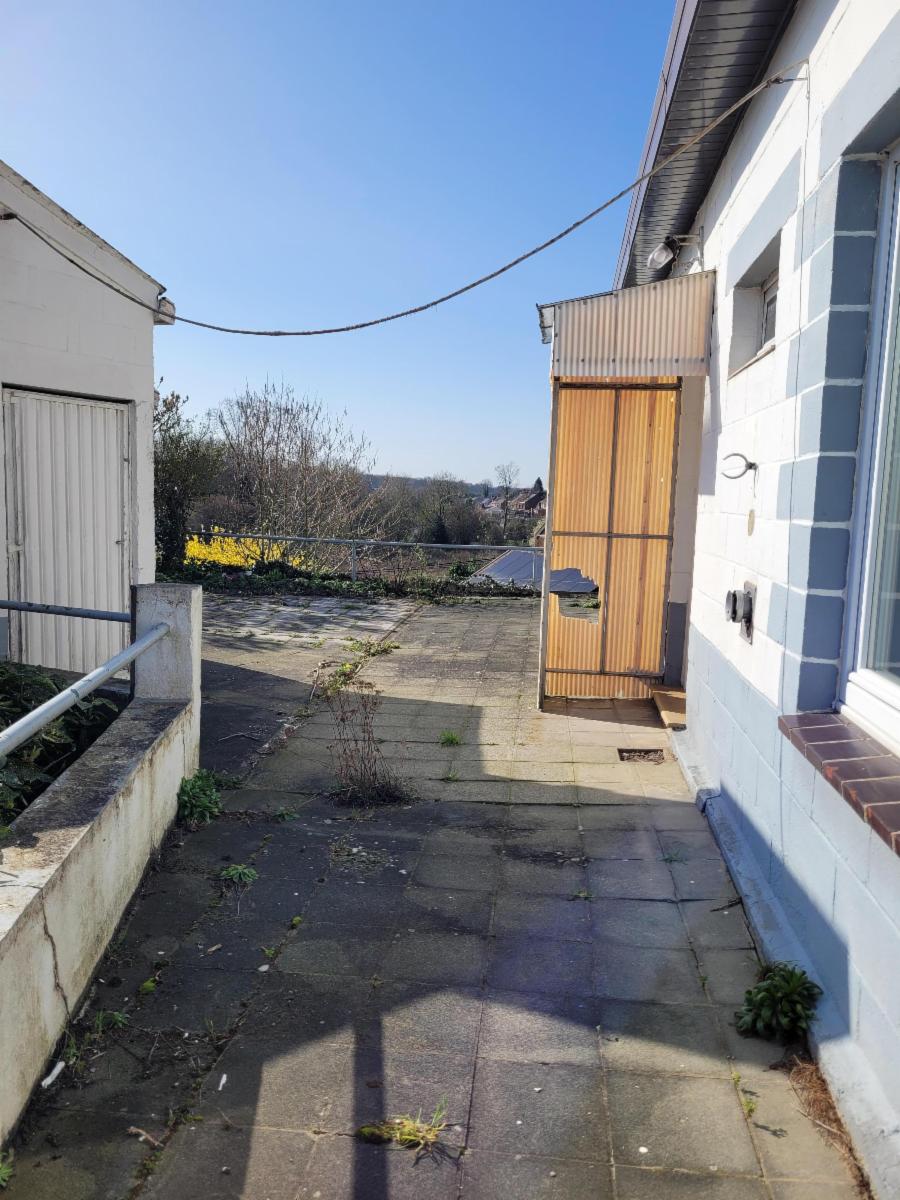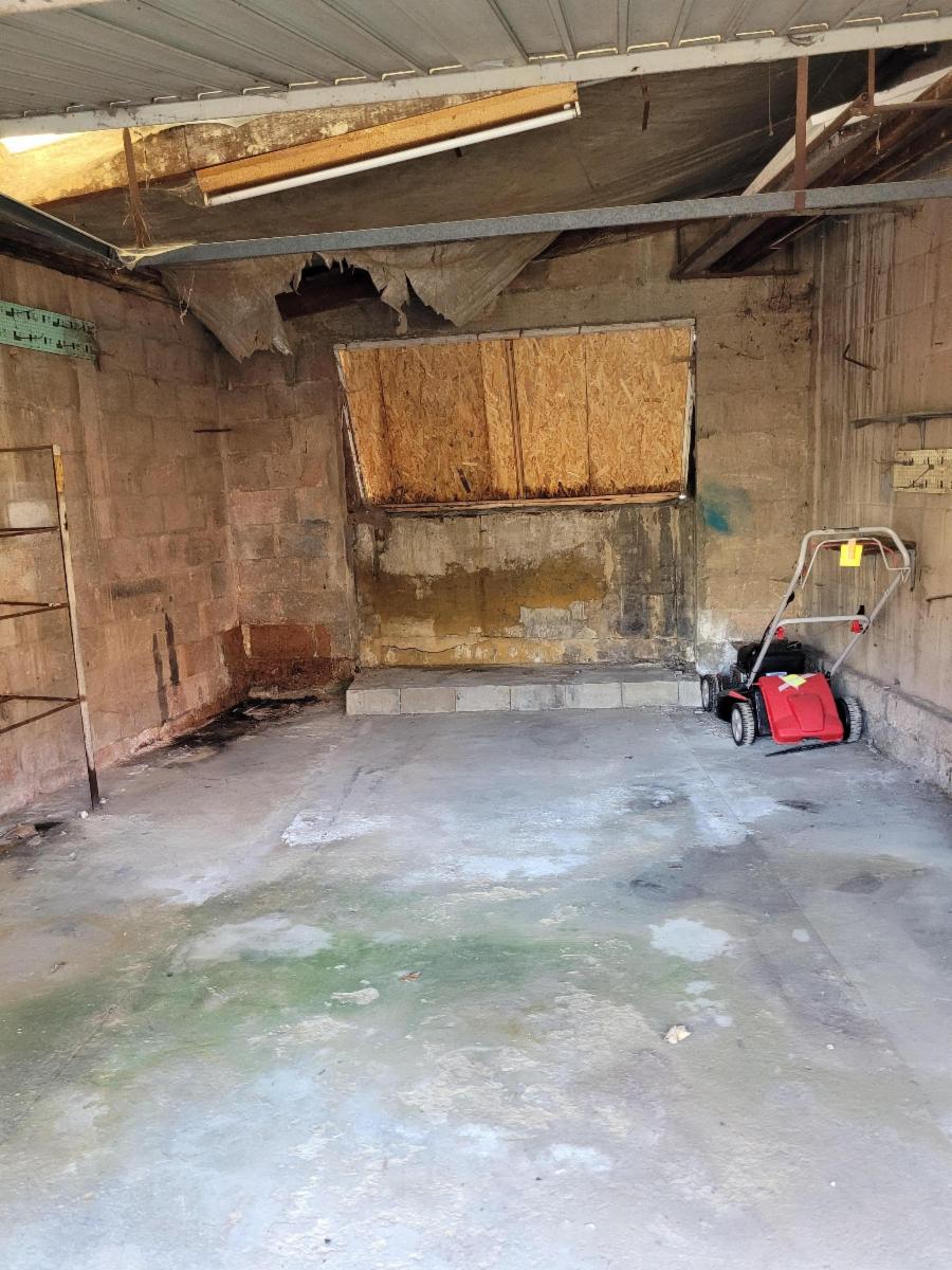 A l'extérieur, on trouve un jardin en pente et un garage accolé à la maison. (le garage est à rénover complètement)