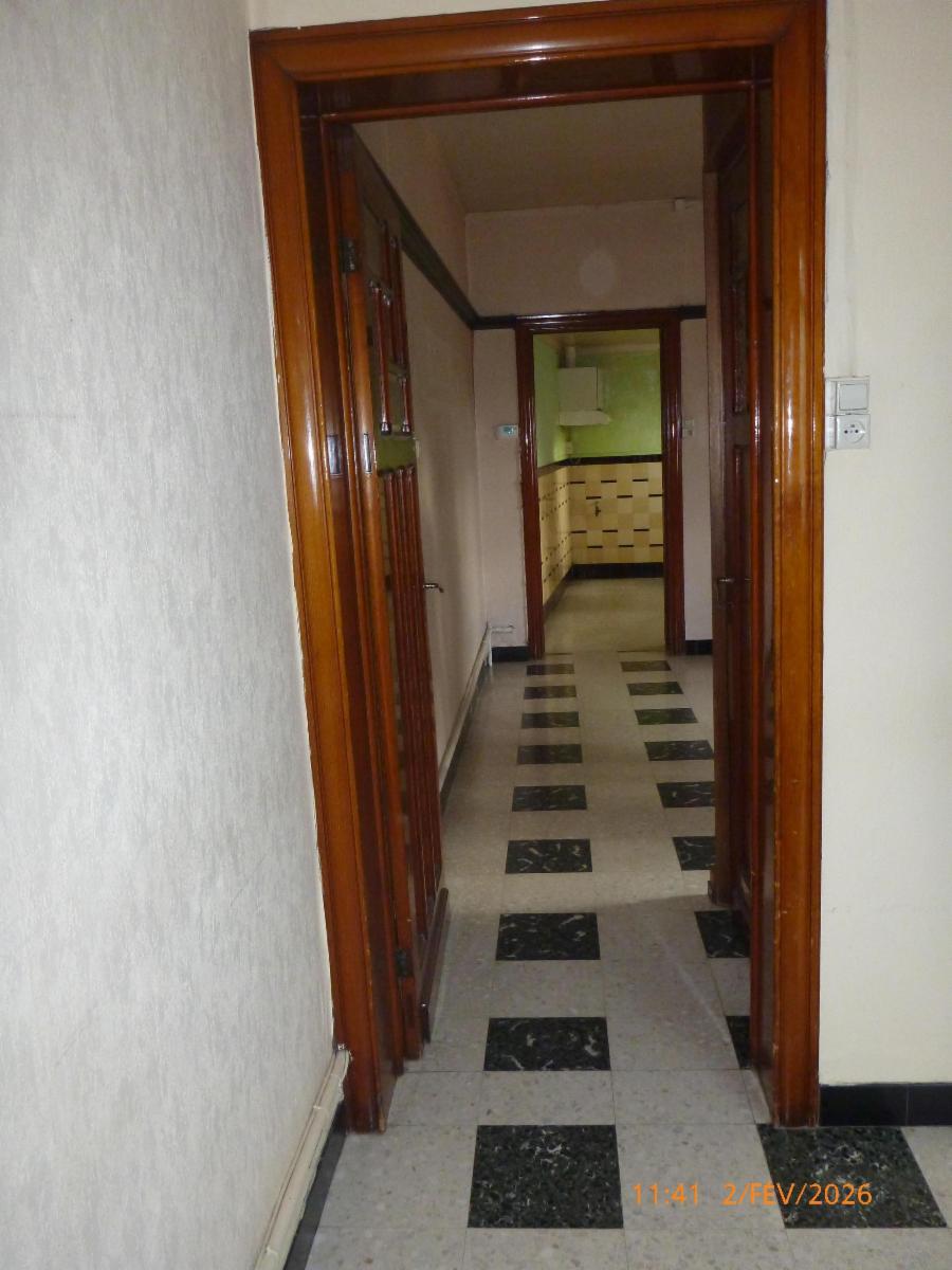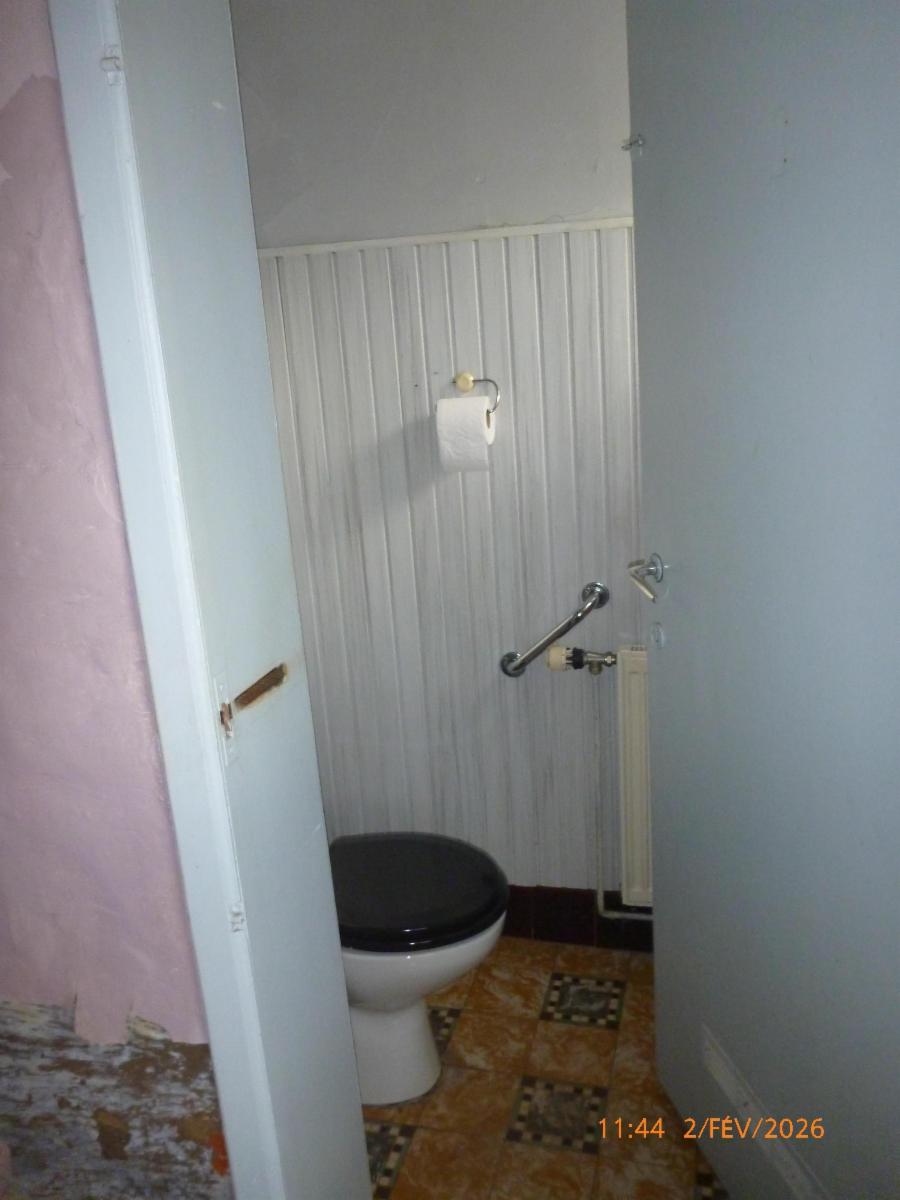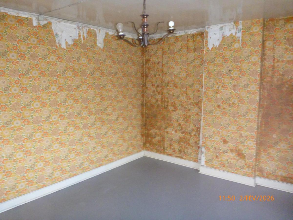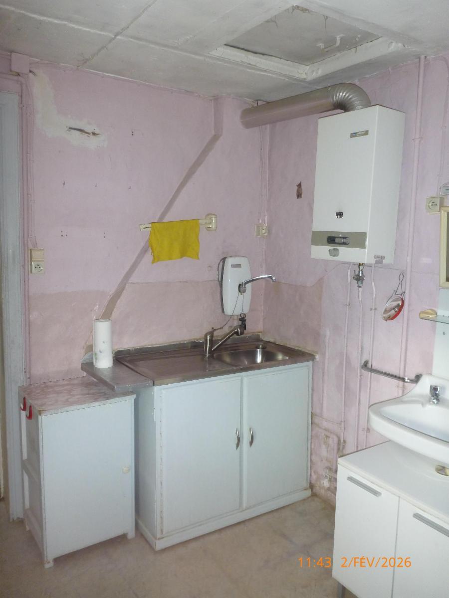 -Rez : un salon, une salle à manger, une salle de douche (WC, douche, évier) et une cuisine non-équipée.