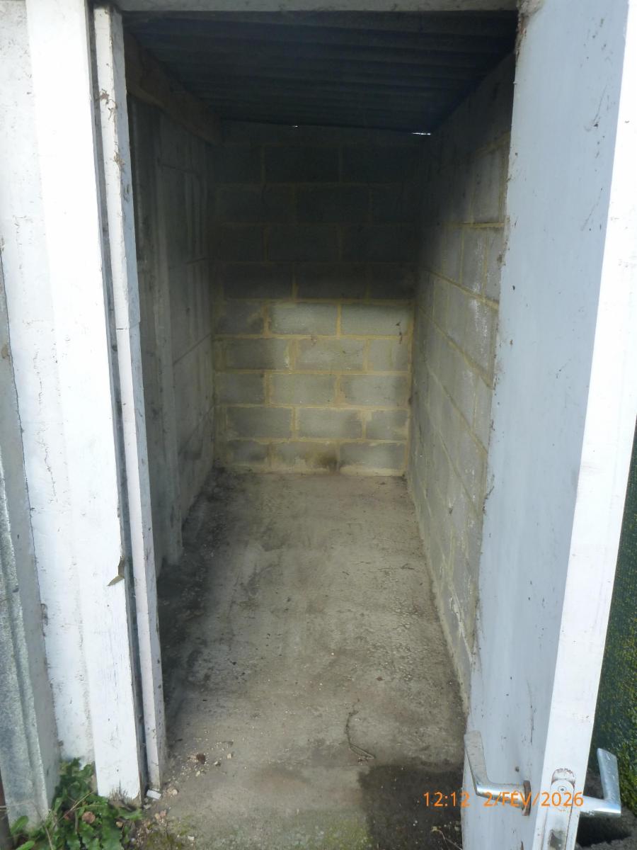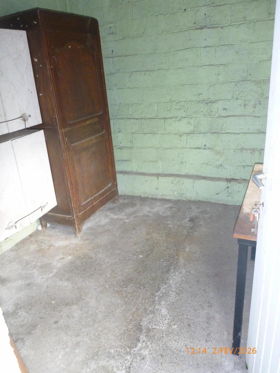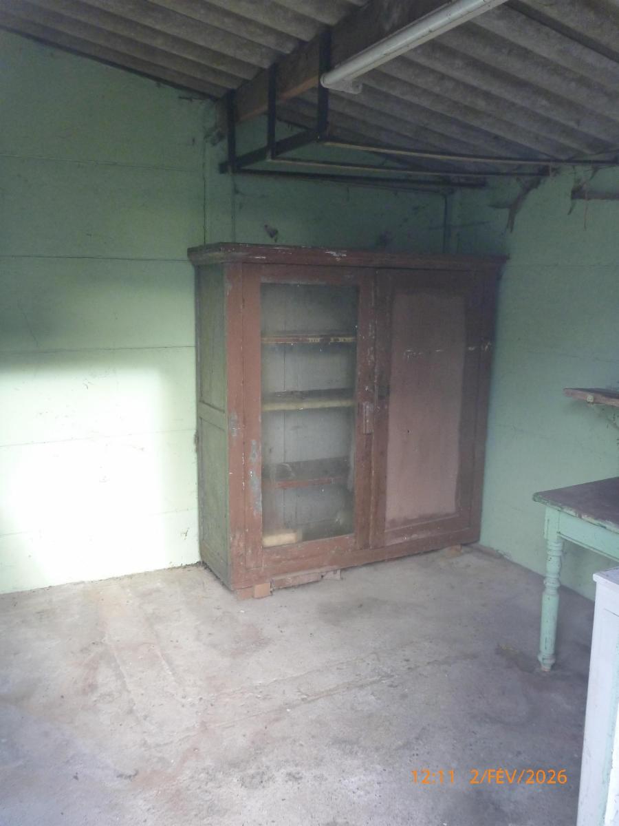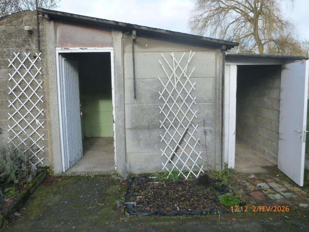 Extérieur : un jardin, un abri de jardin et un passage latéral.