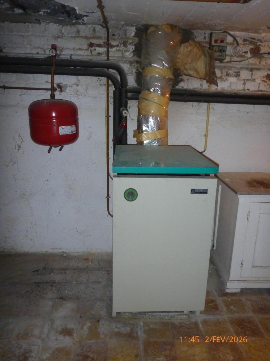 Grenier aménageable (2 chambres possible), châssis double vitrage, une cave, chauffage central au gaz et chauffeau au gaz