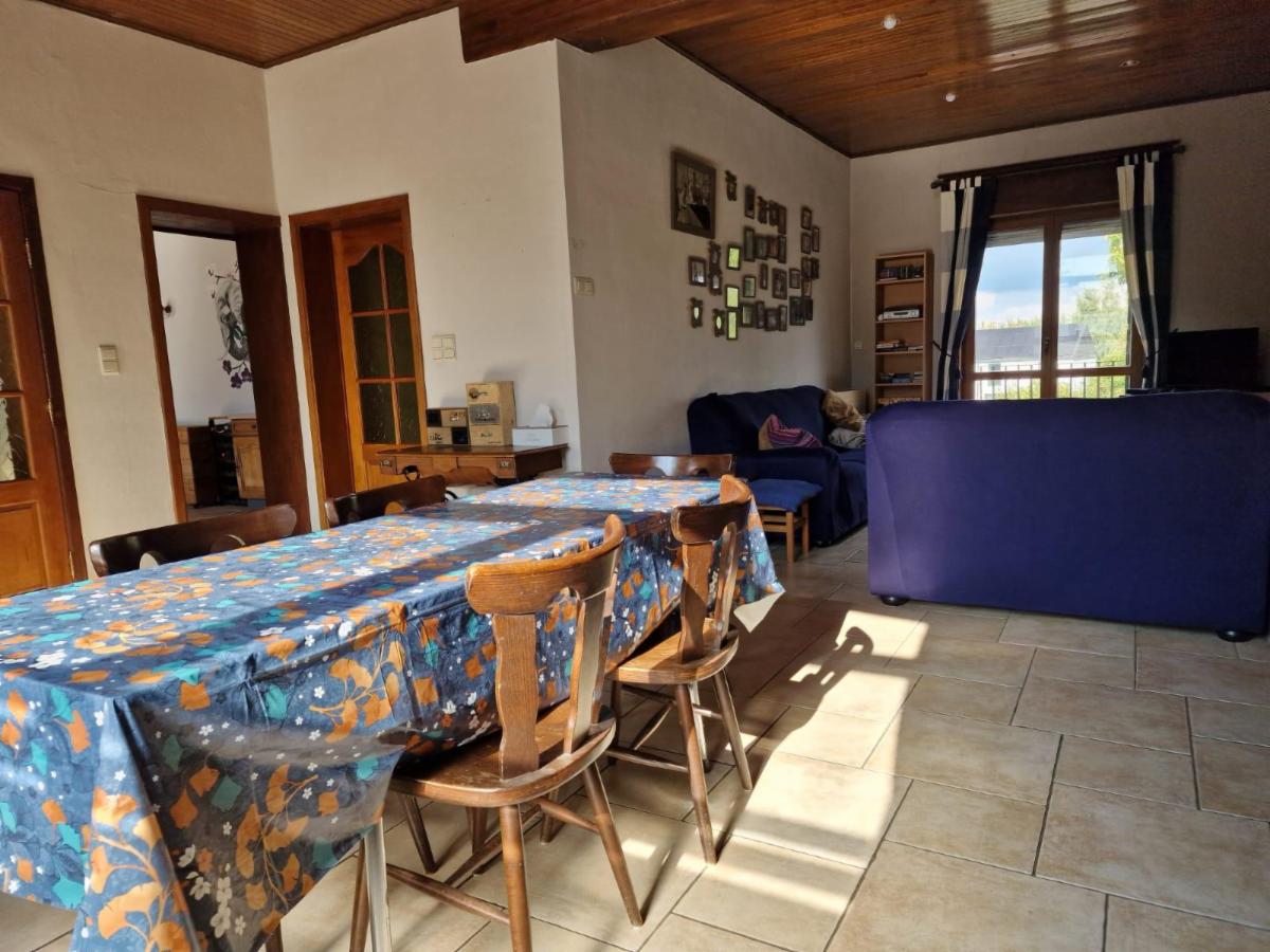 Rez-de-chaussée: Hall, séjour (avec cassette à bois), cuisine équipée, salle de bains, débarras, WC, terrasse au niveau du rez-de-chaussée.