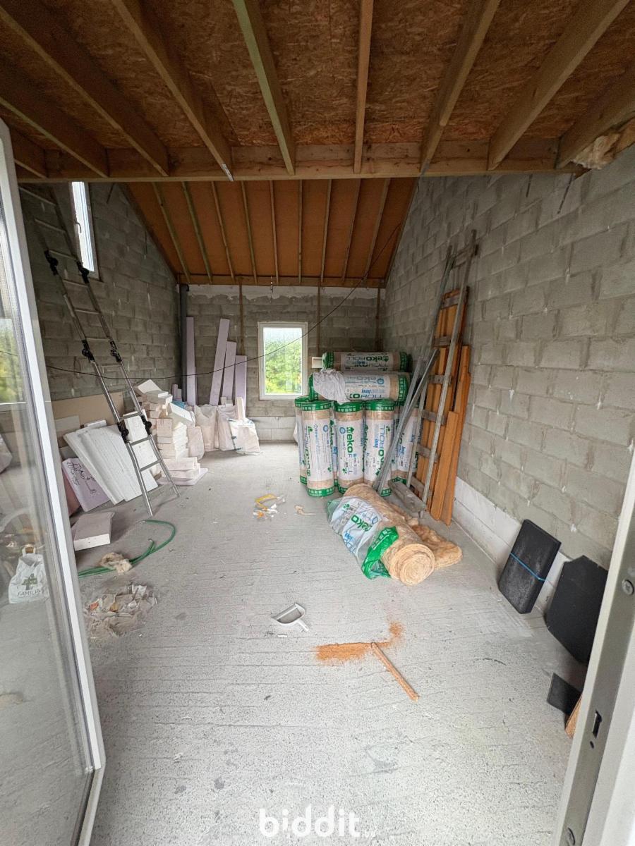 . rez-de-chaussée : hall d'entrée (5,8 m²), vestiaire, cuisine (19,9 m²), séjour (22,1 m²), hall de nuit, chambre (17,3 m²), salle de douche (4,6 m²), pièce bureau/buanderie. WC. Finitions à prévoir (carrelage, peinture, menuiserie intérieure, escalier pour mener au deuxième étage). Terrasse extérieure. Car-port pour 2 véhicules.