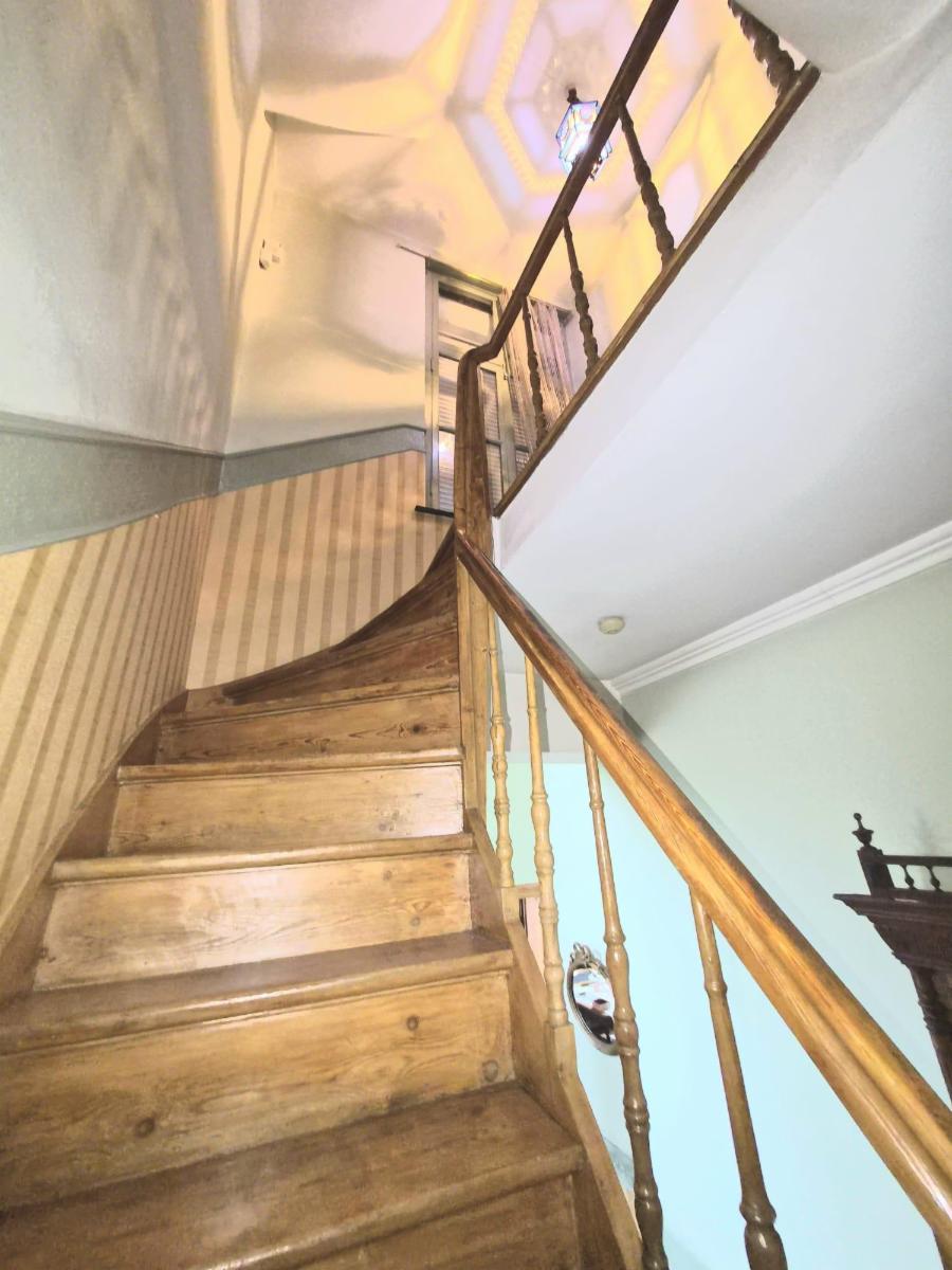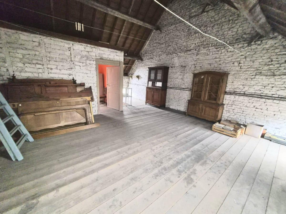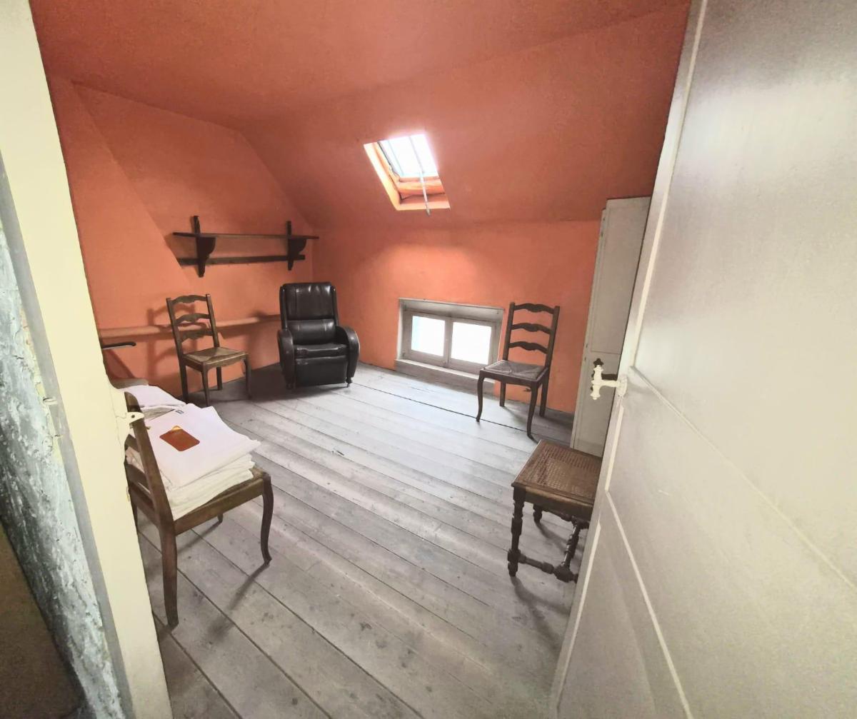 Maison de 182 m², proche de toutes commodités, comprenant cave, couloir, salle à manger, salon, 2ème salon, cuisine, sdb, cour avec remises, jardin avec accès à l'arrière - Etage: 4 chambres, grenier aménageable. Système d'alarme, volets au RDC, pas de double vitrage. Possibilité d'acheter un garage à proximité au prix de 15.000 eur.