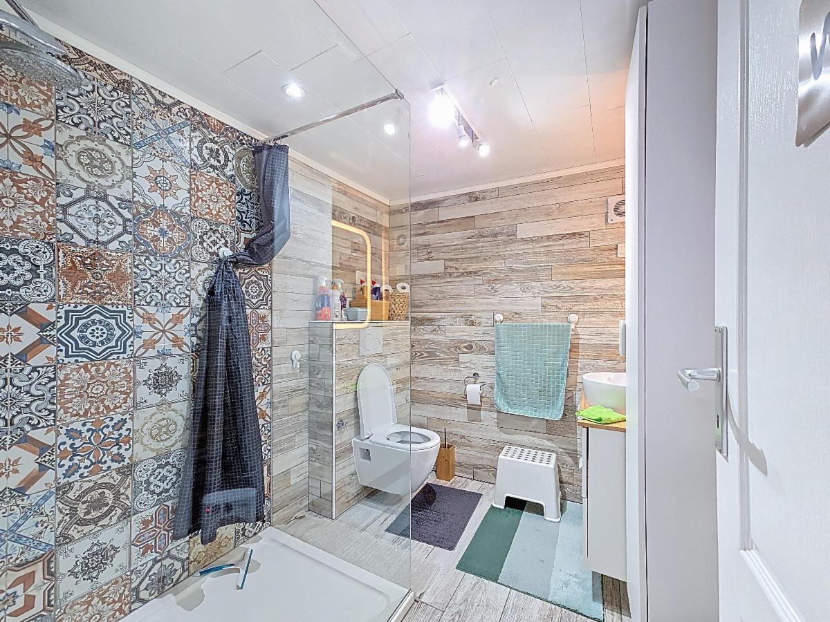 Elle se compose comme suit : Hall d’entrée, espace bureau, salon /salle à manger en espace ouvert, cuisine équipée, une salle de bain moderne avec douche à l’italienne, lavabo simple vasque et WC suspendu.