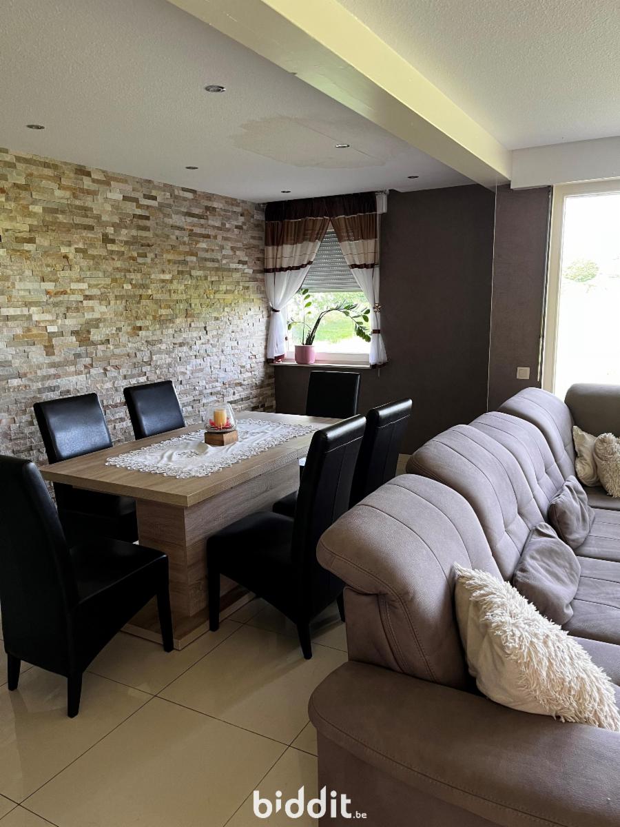 Belle maison unifamiliale se composant de : rez: espace de vie (cuisine - salon - salle à manger), 2 chambres à coucher, salle de bains, WC, petit débarras, garage et chaufferie. 1er étage: espace de vie (salon et chambre à coucher), cuisine, salle de bains et une deuxième chambre à coucher. 2ème étage: grenier.