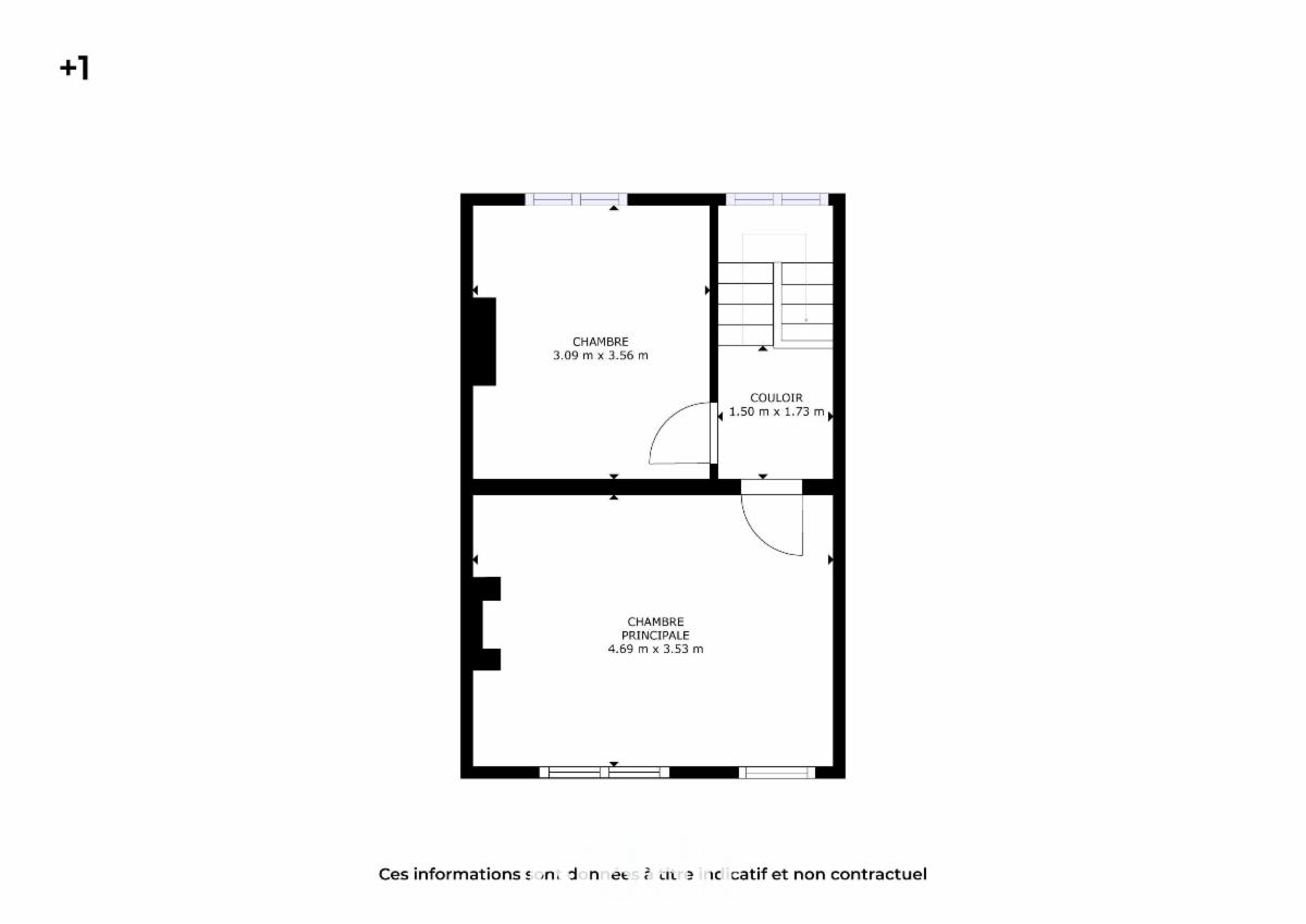 Au 1er étage : Un hall de nuit donnant accès à 2 belles chambres