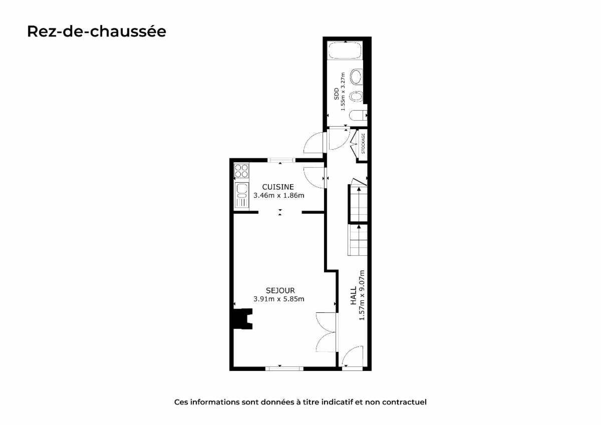 *Au rez-de-chaussée, vous trouverez un séjour lumineux ouvert sur une cuisine équipée, une salle de douche avec WC ainsi qu’un espace de rangement pratique.