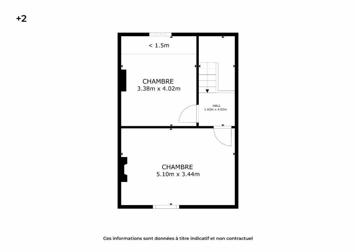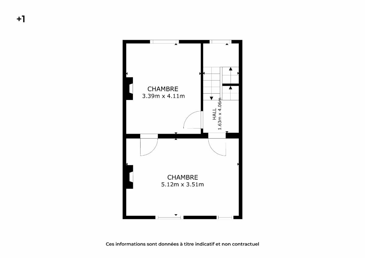 *Le premier étage comprend deux chambres spacieuses accessibles via un hall central.