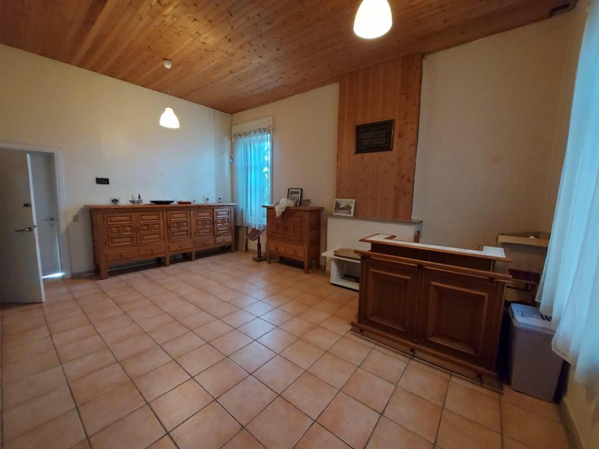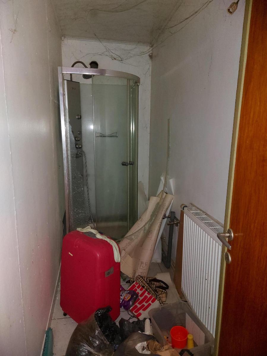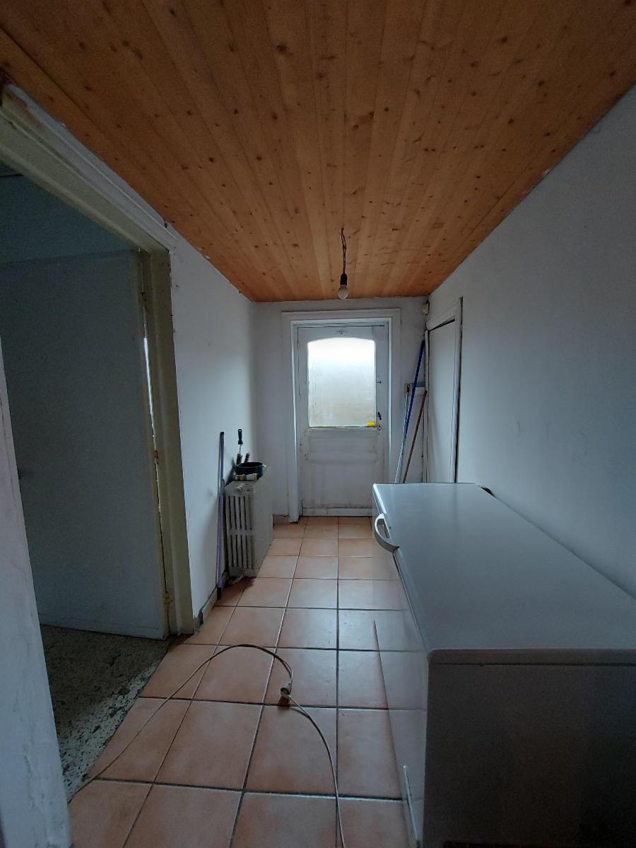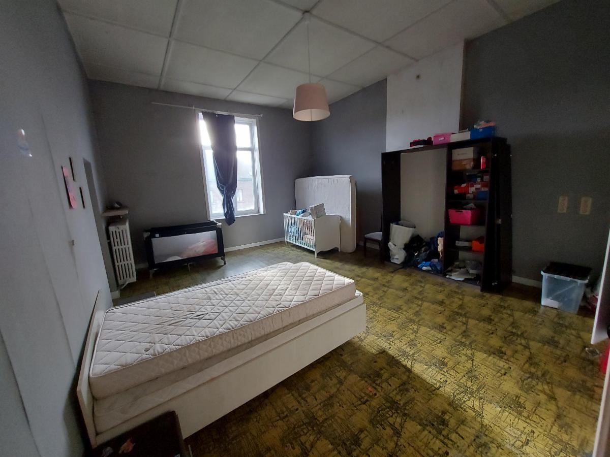 Composition : S-sol : cave. R-de-ch : hall lumineux (lambris – granito au sol) donnant sur un living spacieux (± 40 m²) – cuisine non équipée sur la droite donnant sur un hall central (escalier vers l’étage) avec WC (non utilisable) – second hall vers buanderie (± 20m²) et accès cave (humide) – second living spacieux – salle de bains (douche – wc – lavabo) – annexes (mauvais état – toiture à réparer) avec accès extérieur (avant et arrière).