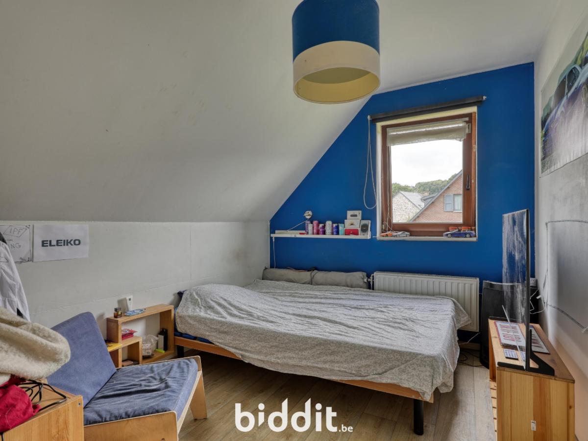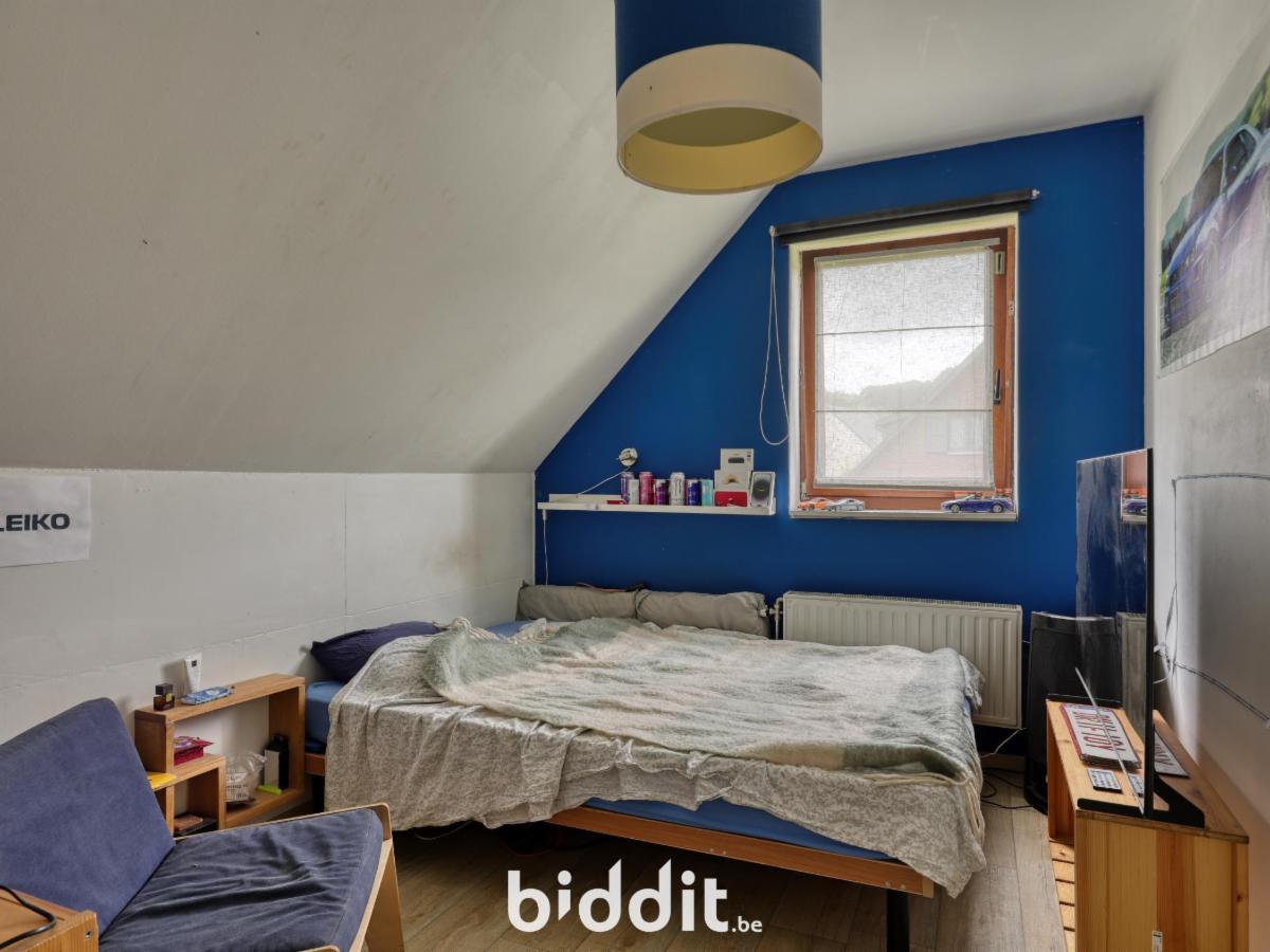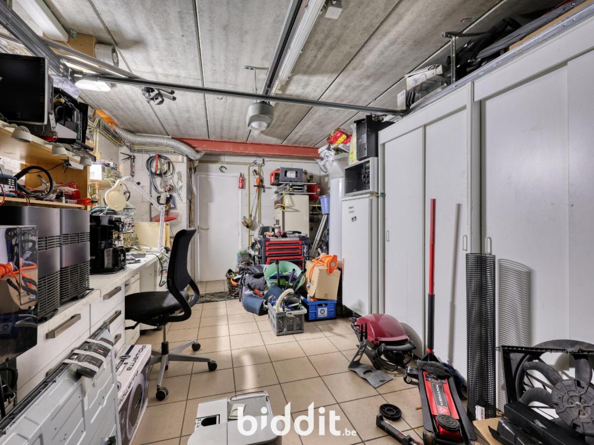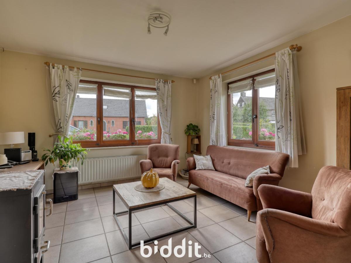 Rez-de-chaussée : hall d’entrée, WC avec lave-mains, salle de bains (bain + douche), vaste living traversant en L avec poêle à bois et accès à la grande terrasse couverte, cuisine équipée Siemens avec sortie vers le jardin, buanderie avec placards, garage motorisé + carport.