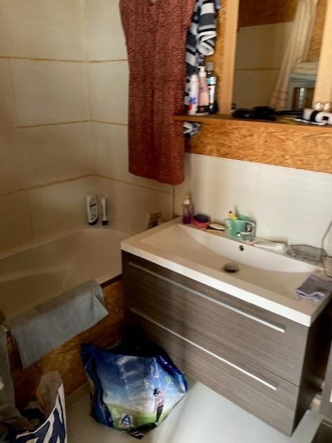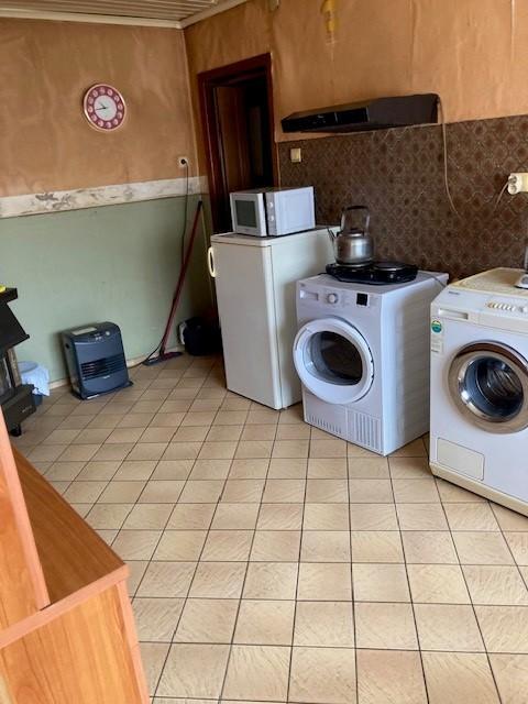 2/ Trois garages transformés en une petite habitation (numéro 5bavec garage, salon, cuisine, salle de bains avec chambre en enfilade, poêle au charbon, châssis simple vitrage + volets