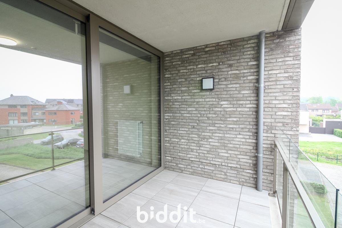 Moderne assistentiewoning in residentie "Villina", gelegen op de 2e verdieping: inkom, keukenhoek, leefruimte met toegang tot terras, berging, badkamer en slaapkamer, en terras.