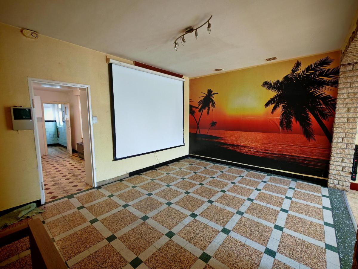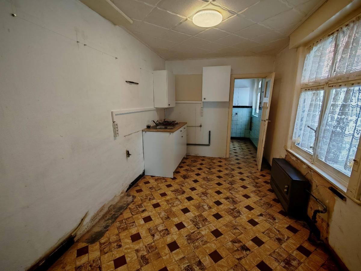 - Rez-de-chaussée : hall d'entrée, salon, salle à manger, cuisine non équipée, salle de bain (baignoire + wc)
