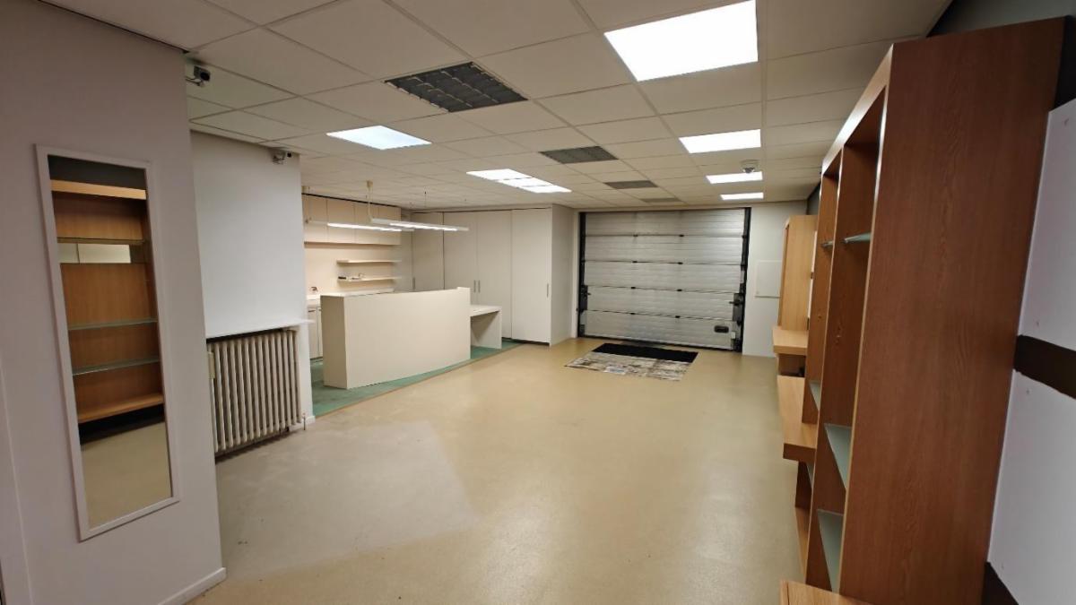 Op de eerste verdieping is er een ruime leefruimte met aanpalend een volledig geïnstalleerde keuken, voorzien van alle toestellen. Verder is er nog een badkamer met toilet en douche en 2 bureau’s.
