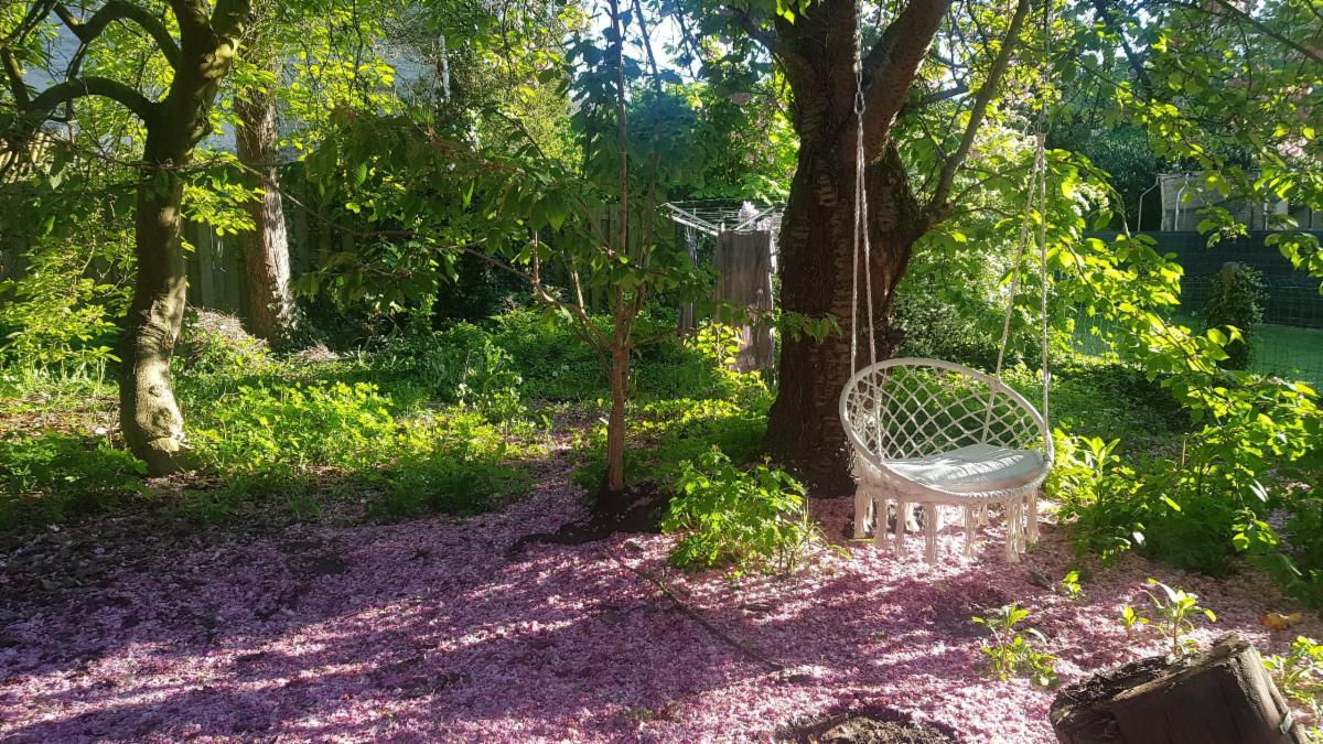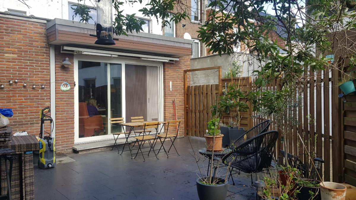 Op het terras is er nog toegang tot een grote was- en bergingsruimte. De tuin is volledig omheind en via het poortje ook van buitenaf bereikbaar. De tuin met verschillende volwassen bomen, struiken en bloemen is bewust wild gelaten en heeft een oppervlakte van 174 m².