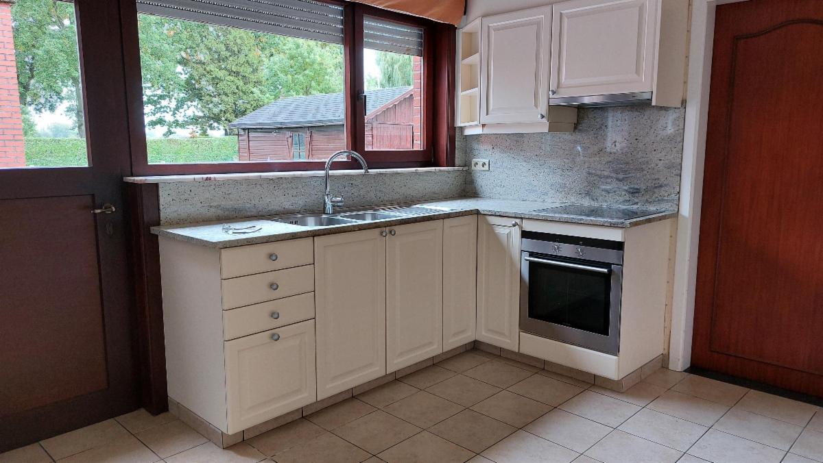 De woning bevat op het gelijkvloers een inkomhal die leidt enerzijds naar de woonruimte en anderzijds toegang geeft tot 2 slaapkamer. Beide slaapkamers zijn 12m2.De woonruimte is 33m2 en biedt zeer veel lichtinval. Verder is er een aparte keuken van 16m2 gerenoveerd in 2003. Naast de keuken bevind zich een 3e slaapkamer van 10m2. De 3e slaapkamer geeft ook nog toegang tot een ruime zolder in 3 compartimenten. Deze zolder biedt de mogelijkheid voor extra kamers. De keuken geeft ook toegang tot een ruime berging van 8m2. Naast de berging bevindt zich een in te richten badkamer en een apart toilet. Aanpalend aan de woning is er een ruime garage. De oprit van de woning geeft ook nog toegang tot een extra houten garage. G score: A P score: B