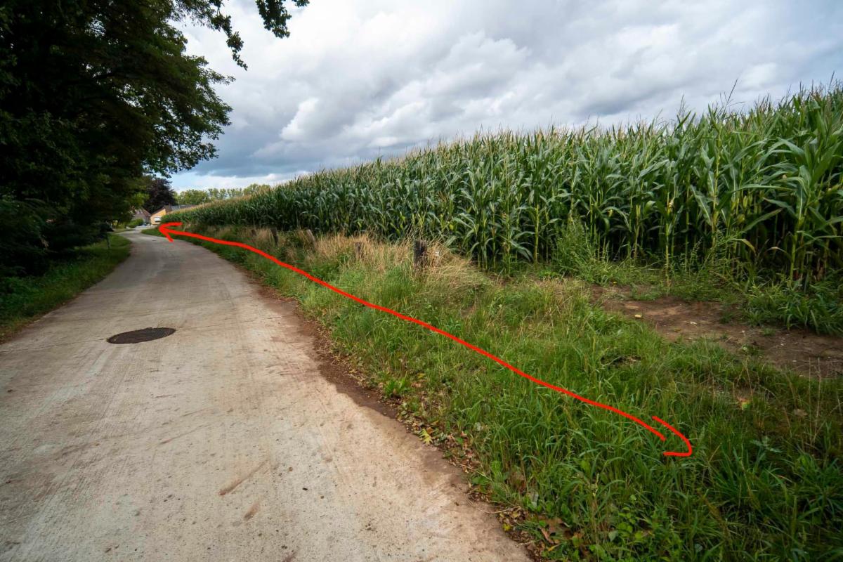 Perceel bouwland van 81a60ca, gelegen in agrarisch gebied, op de hoek van de Larenstraat en de Reustraat.