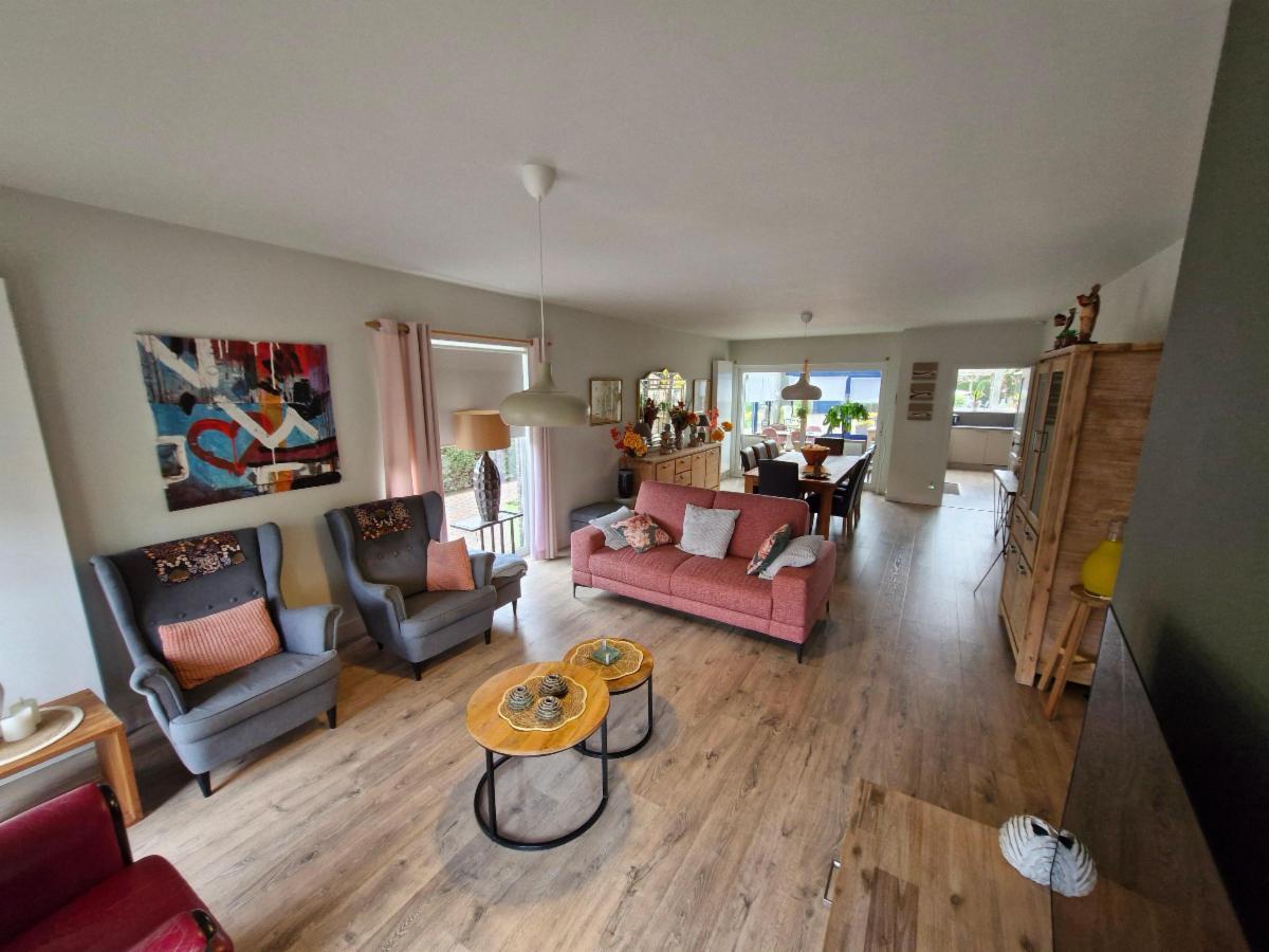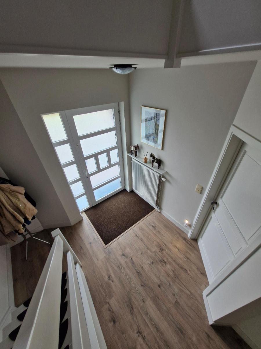 Gelijkvloers: inkomhal met apart toilet, ruime woonkamer, keuken, veranda en grote berging.