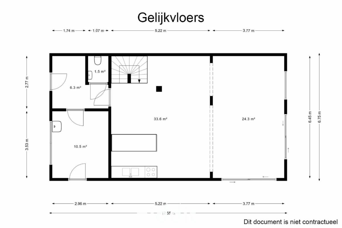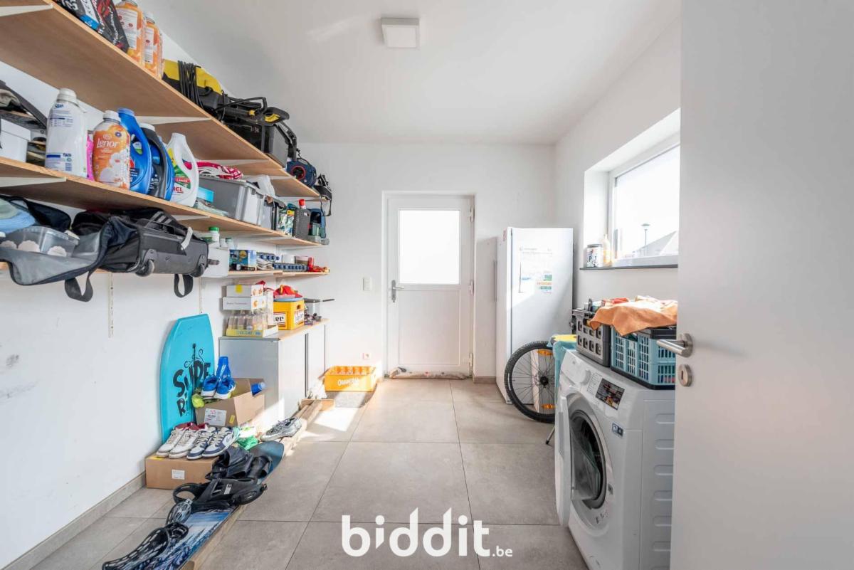 Op het gelijkvloers bevindt zich een inkomhal, wasruimte, toilet en een ruime woonkamer met moderne open keuken.