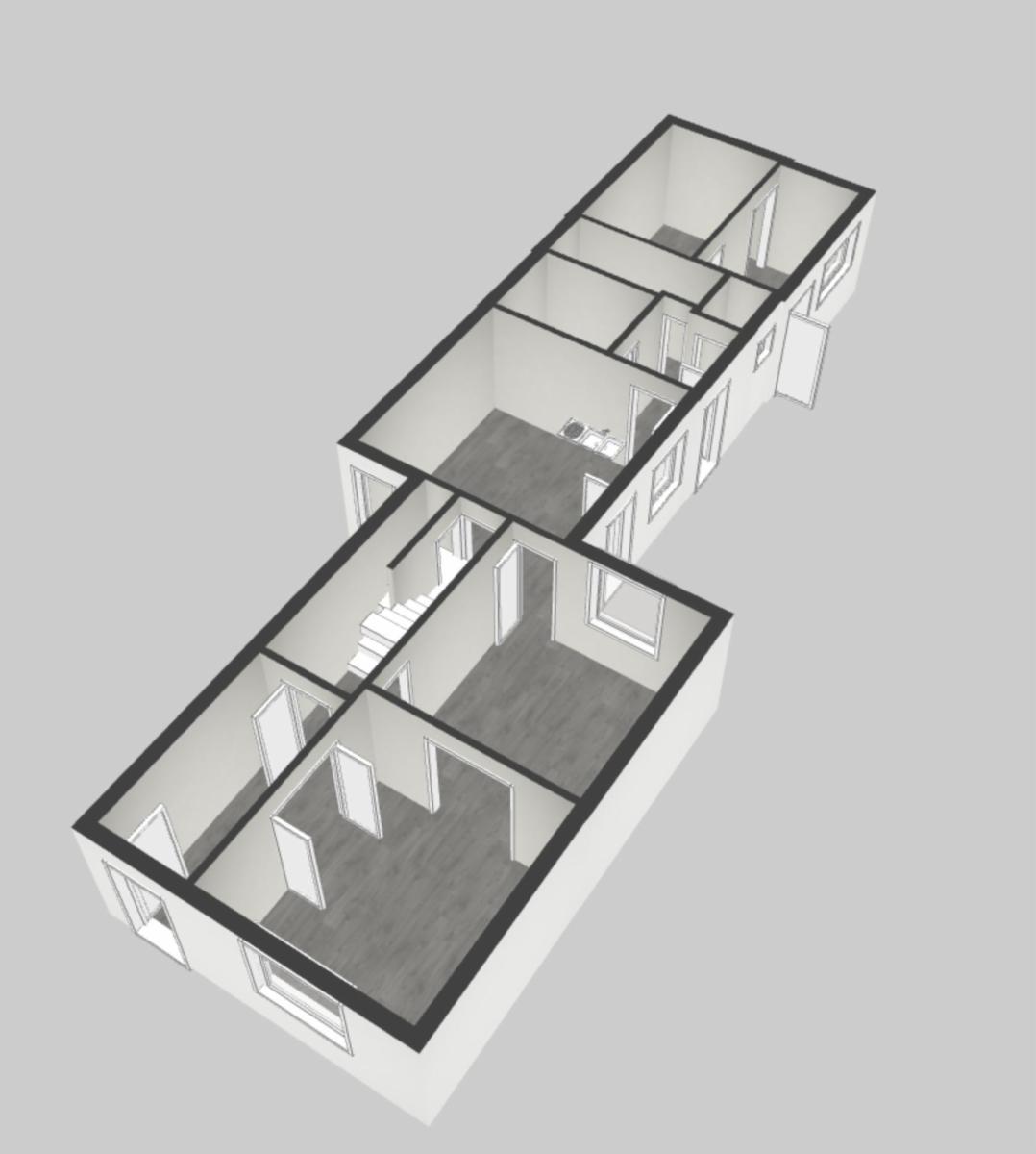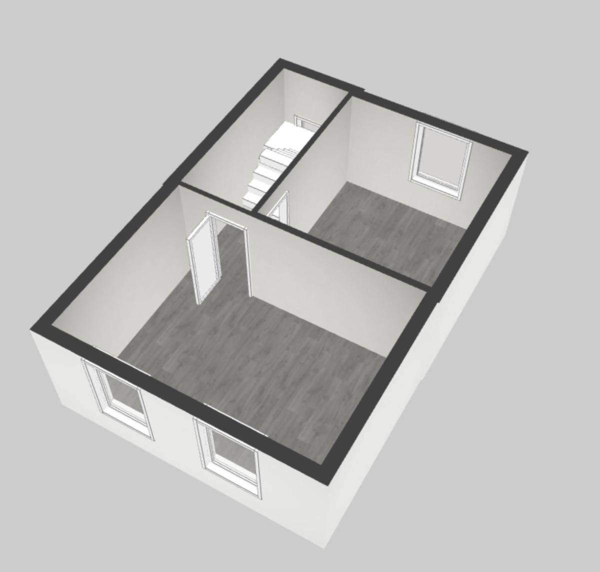 - gelijkvloers: living, keuken, badkamer, aparte wc, berging;
