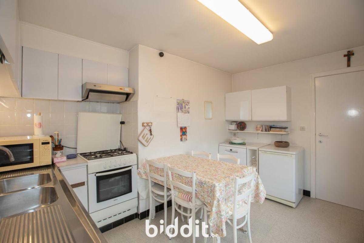 - Gelijkvloers met inkomhal, garage, wc, keuken, living, terras en tuin;
