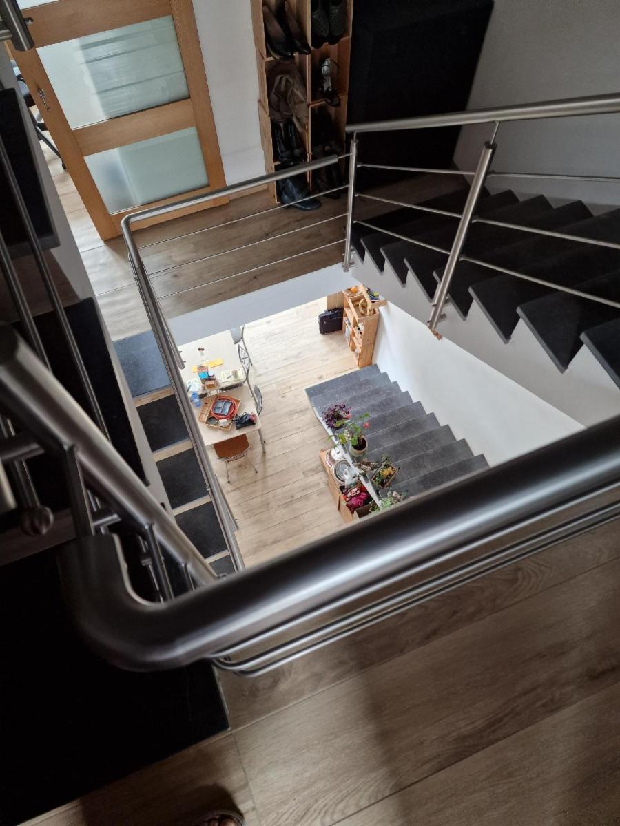 Etage: Maison d'architecte lumière traversante avec des demi niveaux (fenêtre avant et arrière) , 2 chambre ,Sdb avec wc, un wc seul, salon, cuisine, salle a mange pour un total +/- 99 m2.
