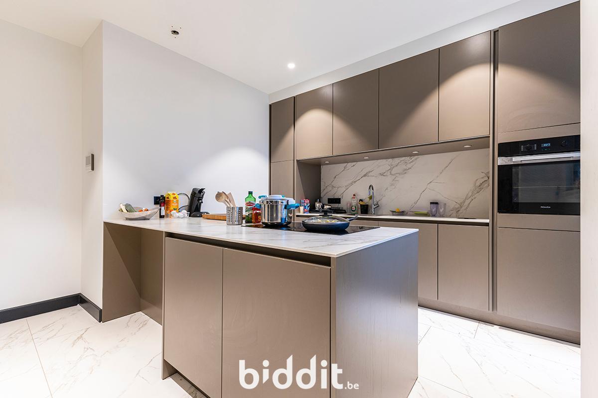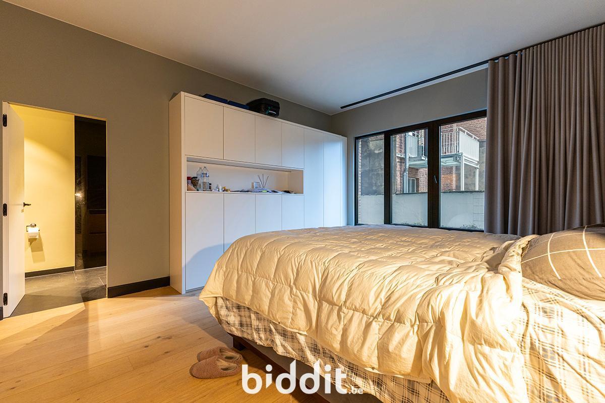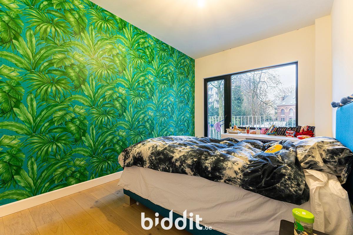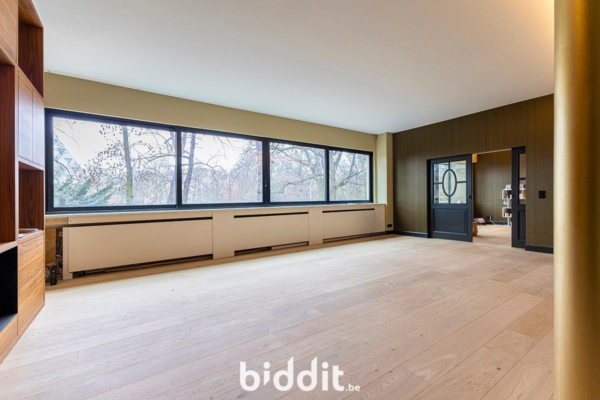 Het appartement beschikt over een royale leefruimte met prachtig eiken parket, een apart bureel, en een volledig ingerichte keuken met aansluitend terras. Verder zijn er vier volwaardige slaapkamers, twee badkamers (waarvan één en-suite), en twee aparte toiletten. Een praktische berging voor was- en droogkast is eveneens voorzien.