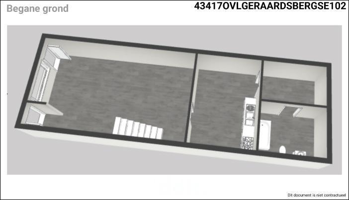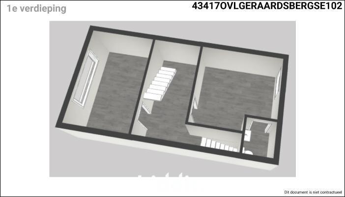 Het gelijkvloers omvat een living, keuken, bergplaats en badkamer, verder zijn er op de 1e verdieping 2 slaapkamers aanwezig, alsook een toiletruimte.