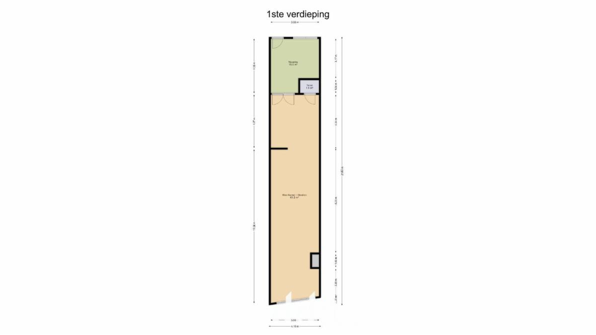 - 1e verdiep: woonkamer, keuken, toilet, veranda;