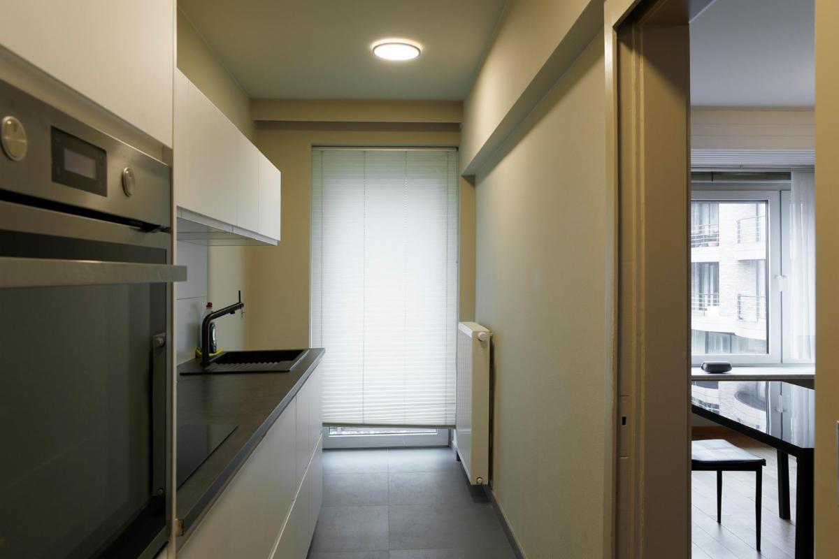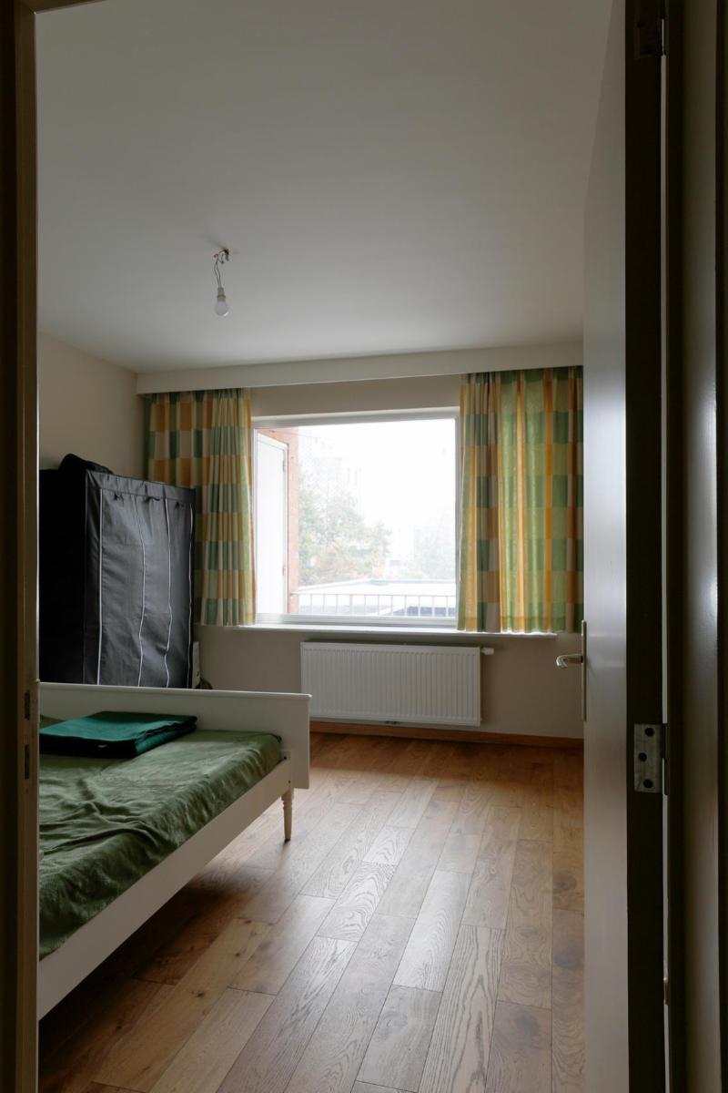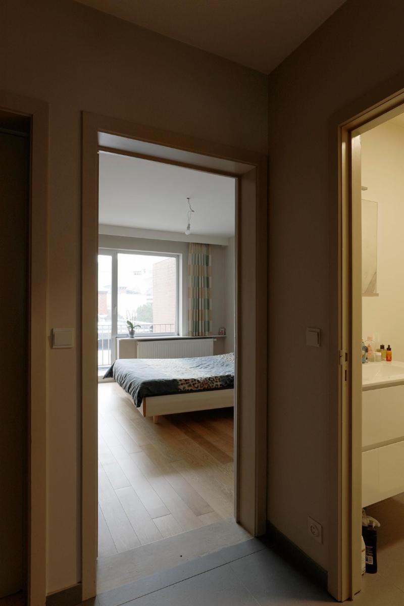 In het centrum van Roeselare bevindt zich dit ruim en lichtrijk appartement bestaande uit een inkomhal met nieuwe vloer, een grote rechthoekige living in parket met het raam uitkijkend op het park aan de overkant van de straat met ingebouwde schoorsteenmantel en de schuifdeur die toegang verleent tot de volledig vernieuwde witte keuken. Deze keuken met nieuwe vloer heeft een ingebouwde oven, een microgolf, een elektrische kookplaat, afwasbekkens en een losstaande grote frigo met diepvries en heeft een klein terras. Naast de keuken bevindt zich een aparte berging met de vernieuwde gasketel. Er is een volledig vernieuwde badkamer met inloopdouche, een lavabo met kast en spiegel en vanuit de inkomhal bereik je eveneens een apart hangtoilet. Dit appartement heeft twee grote slaapkamers in parket met ramen op de achterkant van het appartement. De slaapkamer rechts geeft toegang tot het terras over de volledige lengte van de twee slaapkamers. De tellers bevinden zich in de kelder waar er zich ook een berging voor het appartement bevindt. In het achterliggende deel van het appartementsgebouw bevindt zich de garage met elektrische poort.