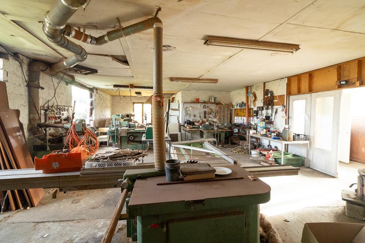 Indeling: kelder, inkomhal, keuken, berging, toilet, leefruimte, zitruimte, slaapkamer, badkamer, veranda; Verdiep: 4 slaapkamers en overloop, aanbouw met werkplaats en garage.