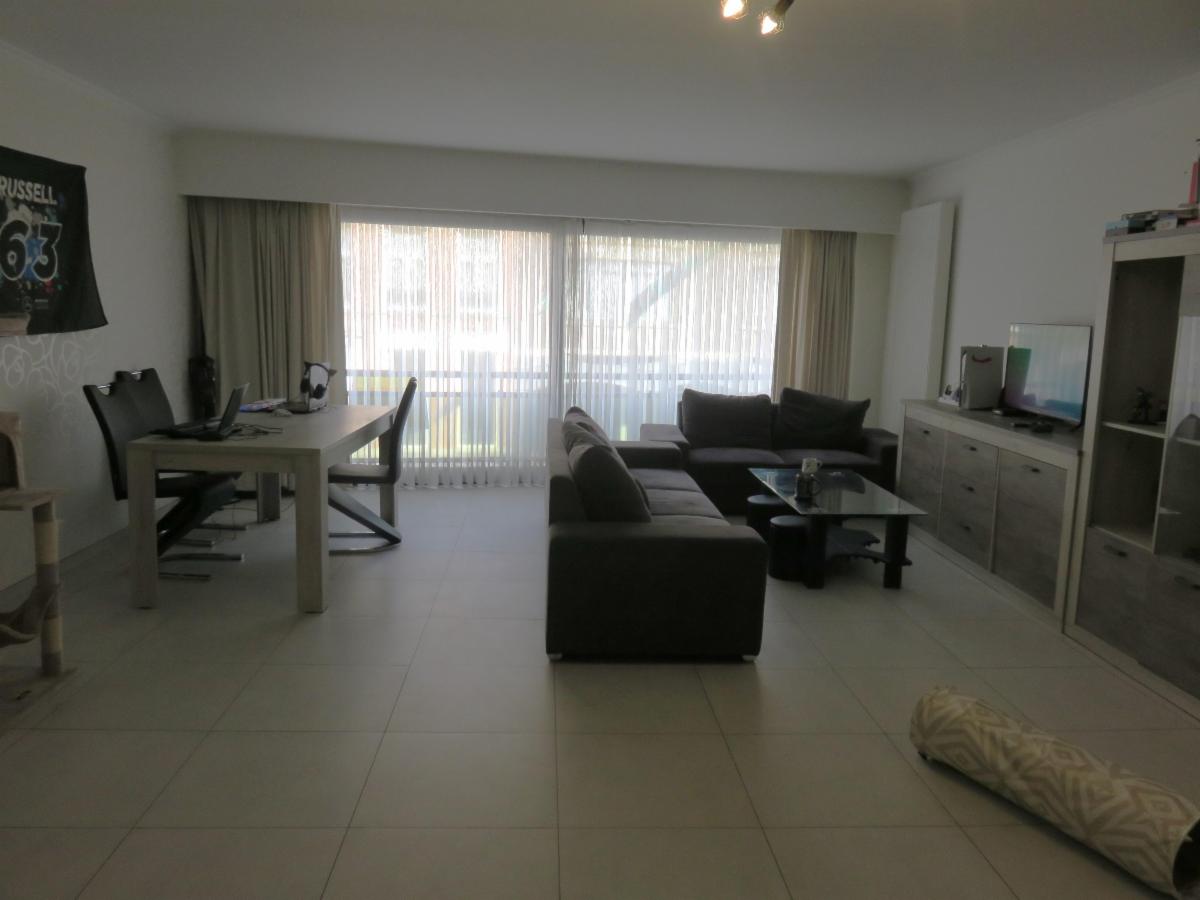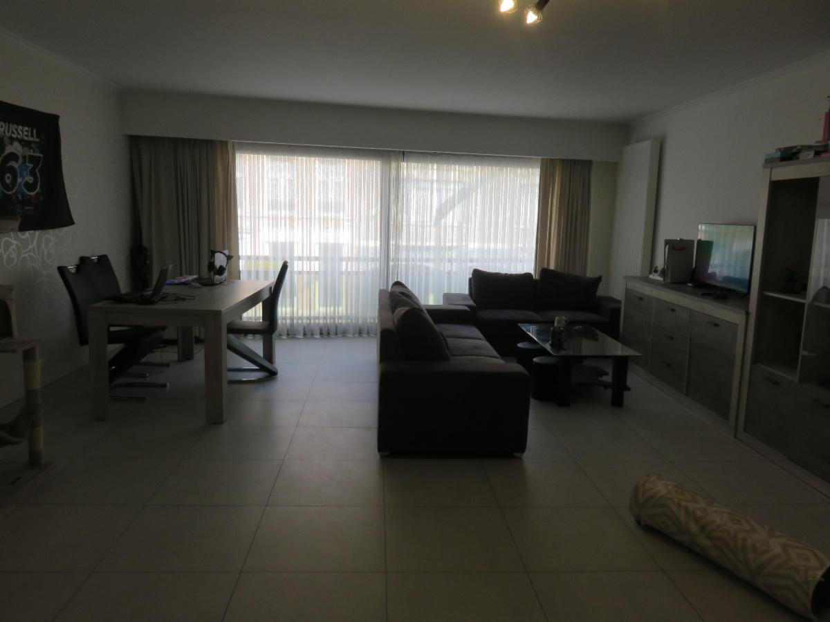 Inkom- en nachthal met apart toilet en kleine berging met plaats voor wasmachine. Ruime woonkamer 38m² aan de straatzijde met klein balkon. Een open keuken van ca 6m² vergroot het ruimtelijke gevoel, modern ingericht en voorzien van alle ingebouwde toestellen. Badkamer is vernieuwd met inloopdouche en lavabomeubel. Achteraan zijn 2 slaapkamers van ca 14 en 9,5m². Via de kleine kamer is er toegang naar een zonnig terras aan de achterzijde van het gebouw. Hier is tevens een bezemkast met ketel CV-aardgas. Autostaanplaats op gelijkvloers inbegrepen in de verkoopprijs. Gemeenschappelijke kosten gebouw ca 90 euro/mnd. Appartement thans verhuurd. G score: A P score: A