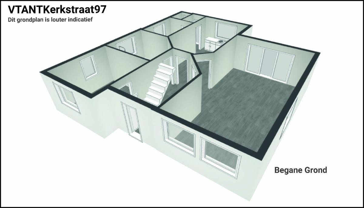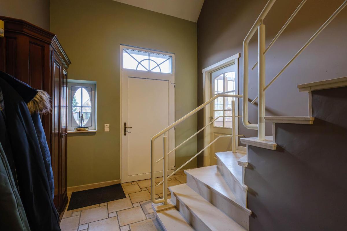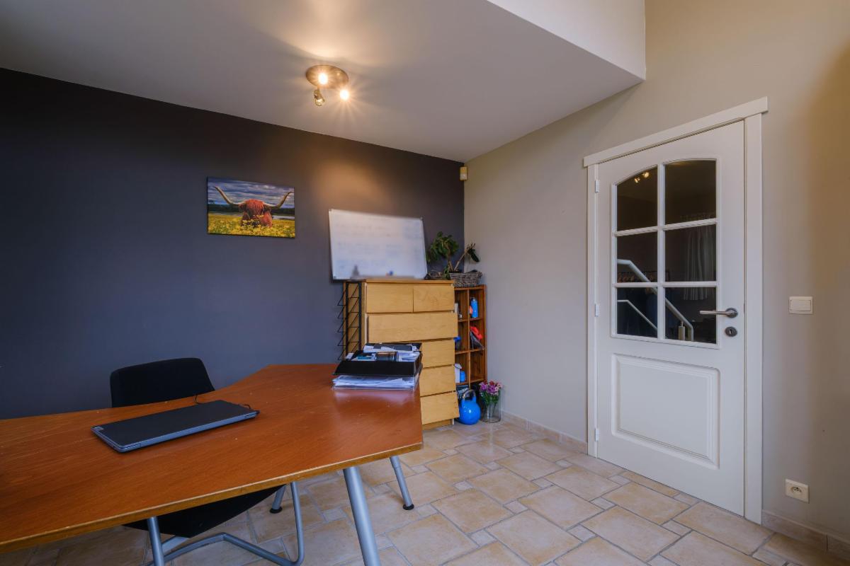 Via de inkomhal bereikt men alle ruimtes op het gelijkvloers: het bureel, de badkamer, de keuken en de woonkamer.