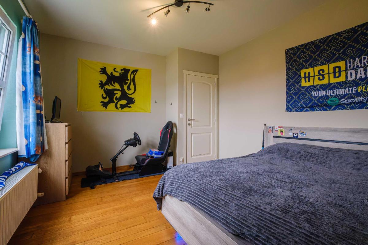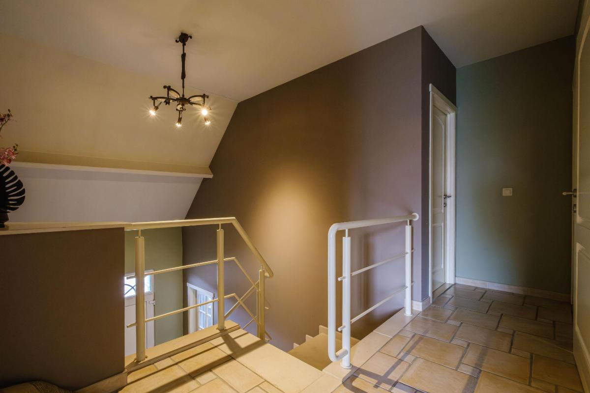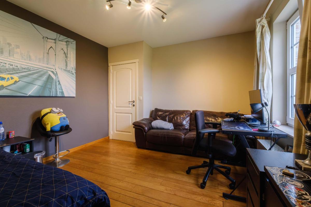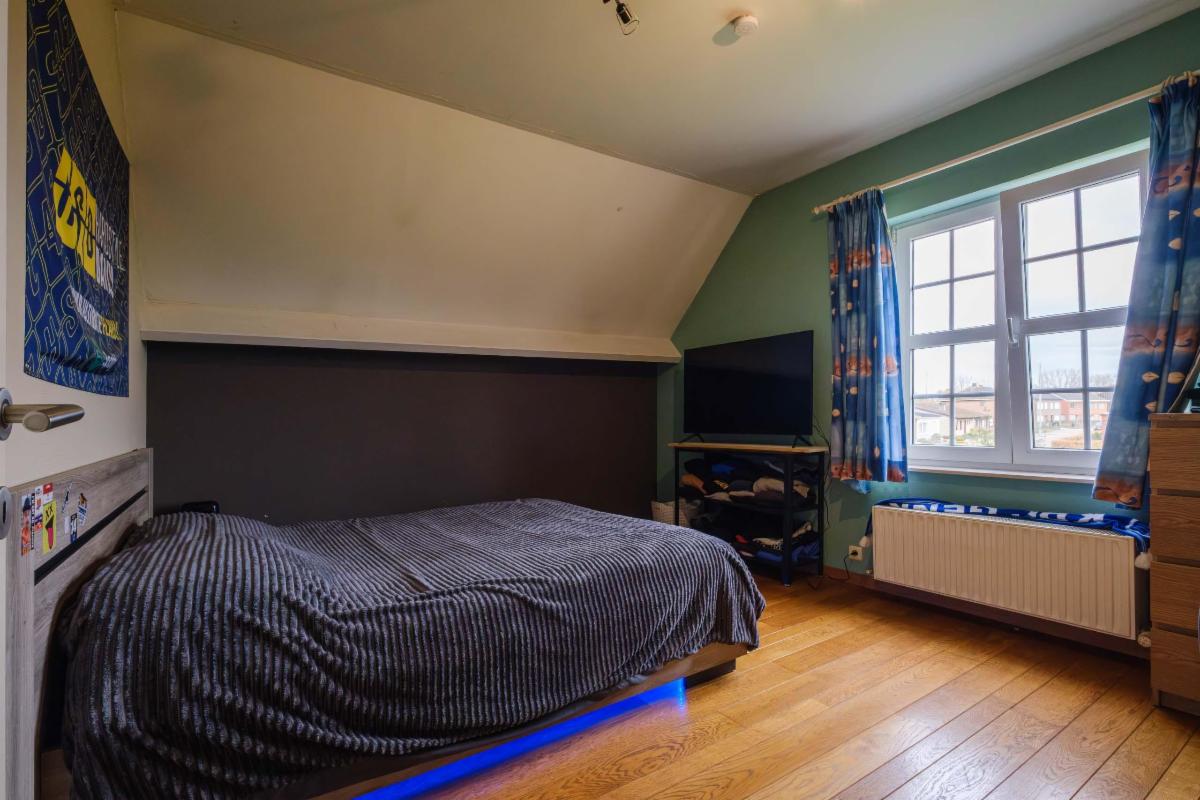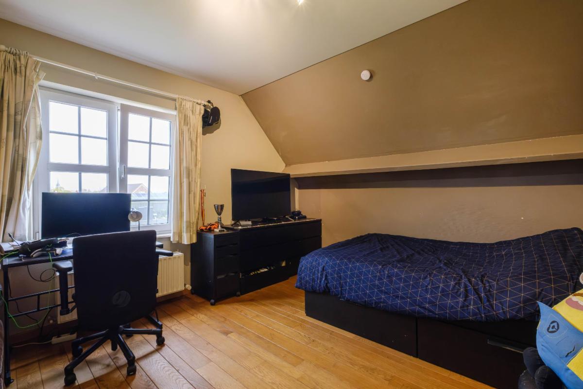 De verdieping is toegankelijk via een vaste natuurstenen trap. Hier bevindt zich de nachthal, 3 slaapkamers, waaronder een ruime slaapkamer van 28 m² met aparte dressing. Verder is er een berging met de gasinstallatie van de centrale verwarming en toegang tot de zolder via een vlizotrap. Er is ook een apart toilet met wastafel.