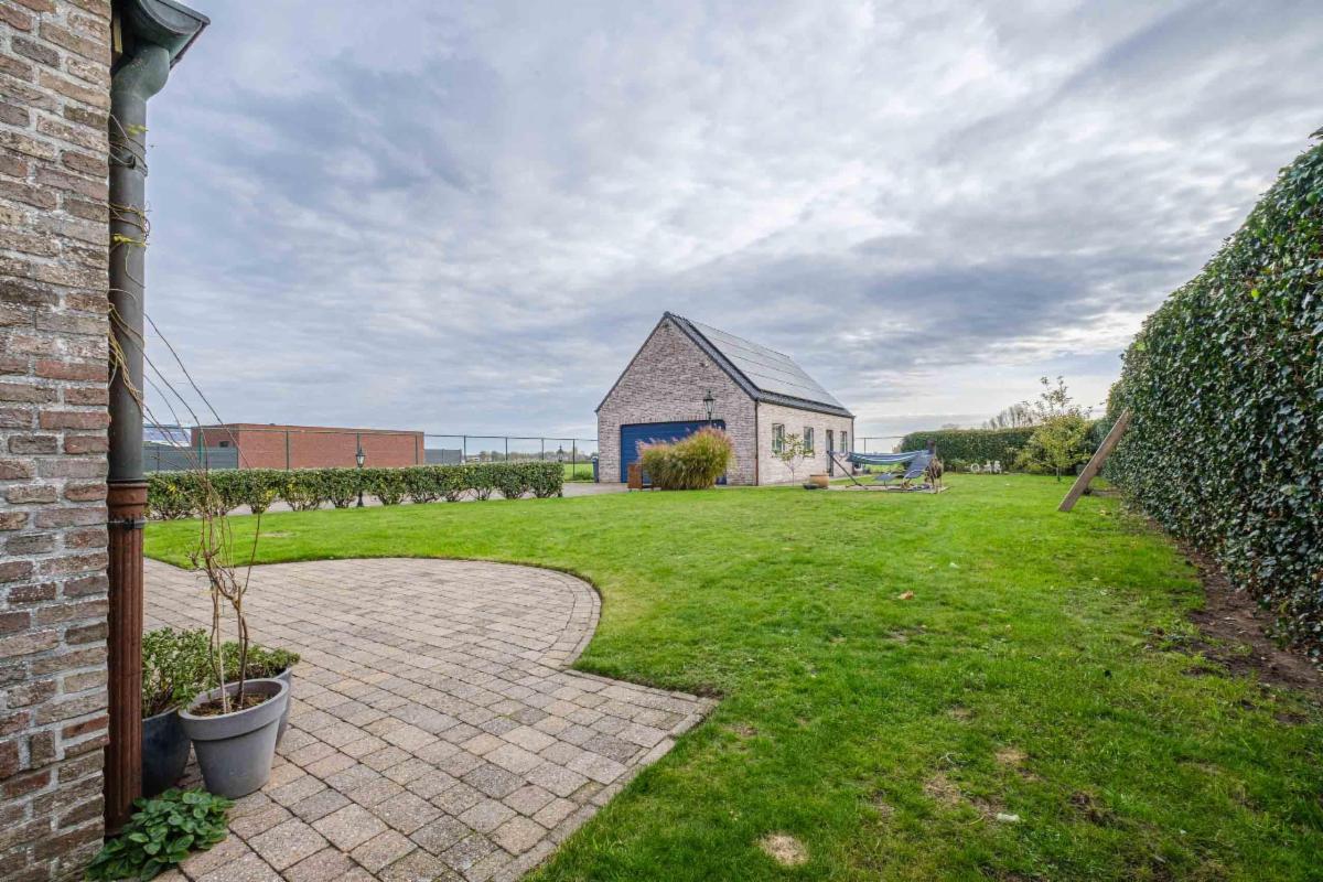 Het perceel is volledig omheind (PVC-draad) en voorzien van een aangelegde voortuin, terras en oprit. Daarnaast is er nog een extra terras in bankirai, alsook een deels overdekt terras.