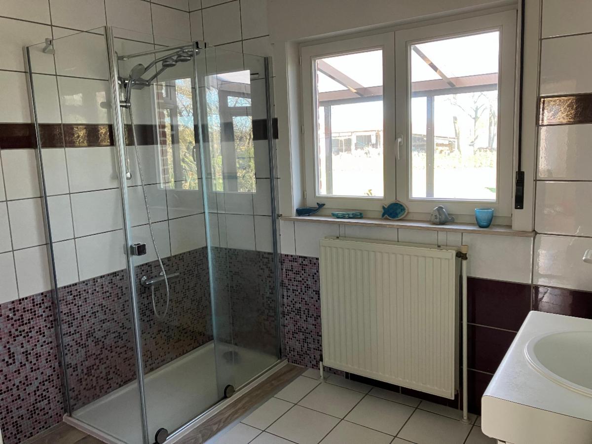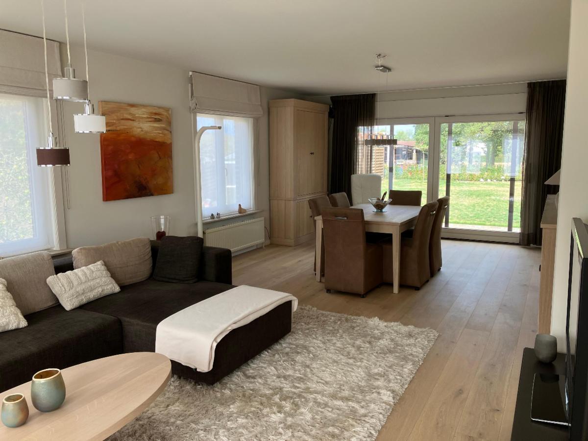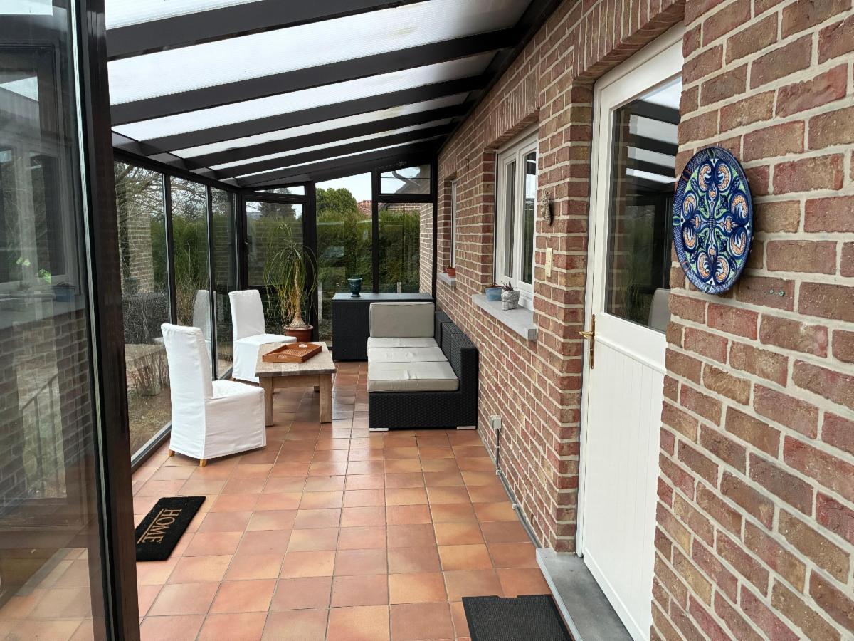 Over de hele breedte van het huis is achteraan nog een aanbouwveranda met toegang tot de tuin.
