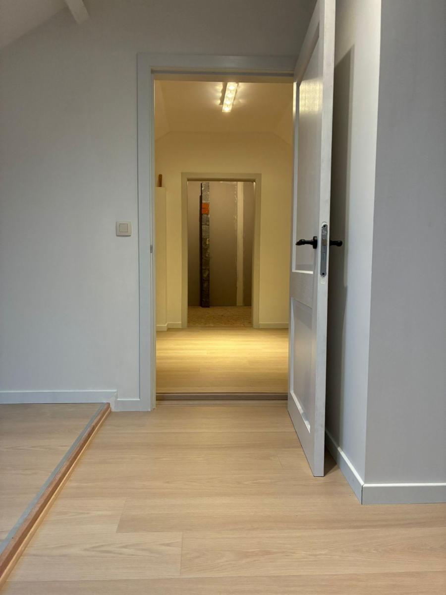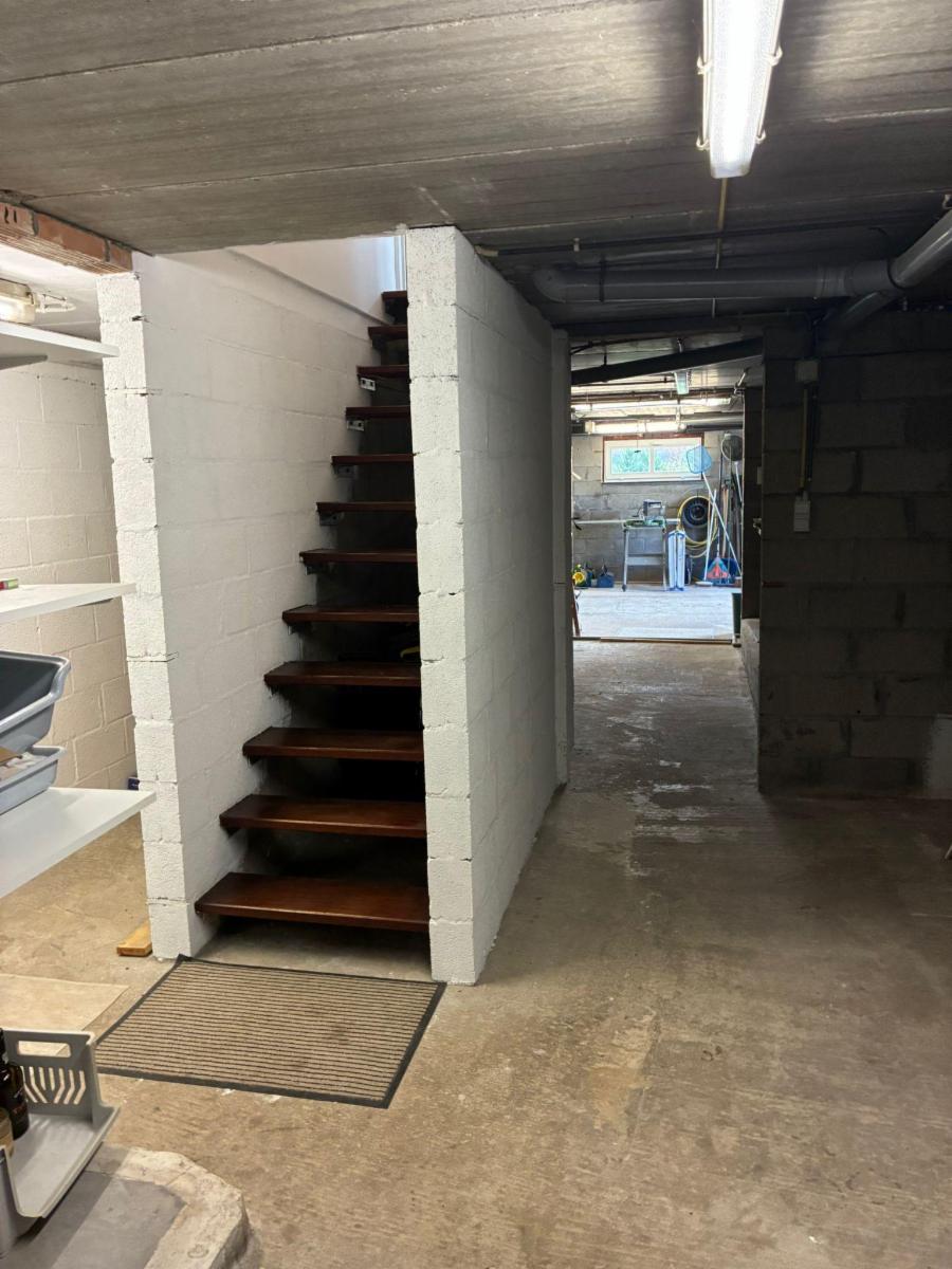 Via de vaste trap bereiken we de gerenoveerde bovenverdieping. De trap komt uit op de ruime overloop met dakraam en loopt links over in een open ruimte met dakraam. Het rechtse deel bereik je via een deur en is ingedeeld in twee ruimtes waarvan 1 deels afgewerkt. De woning is volledig onderkelderd. De kelder heeft natuurlijk daglicht en bereik je via een toegankelijke trap vanuit de keuken. Meerdere ruimtes met oa hobbykamer, verwarmingsketel, aansluiting voor wasmachine, garage (elektr. poort) die bereikbaar is via achterkant van de woning. Veiligheidssloten op ramen, deuren en garagepoort