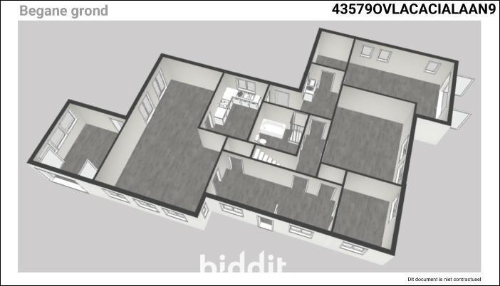 Gelijkvloers: inkom, living, keuken, slaapkamer, badkamer, bureau, wasplaats, berging/wijnkelder, garage, tuinkamer met barbecue; Verdiep: 2 slaapkamer, 3 zolderkamers.