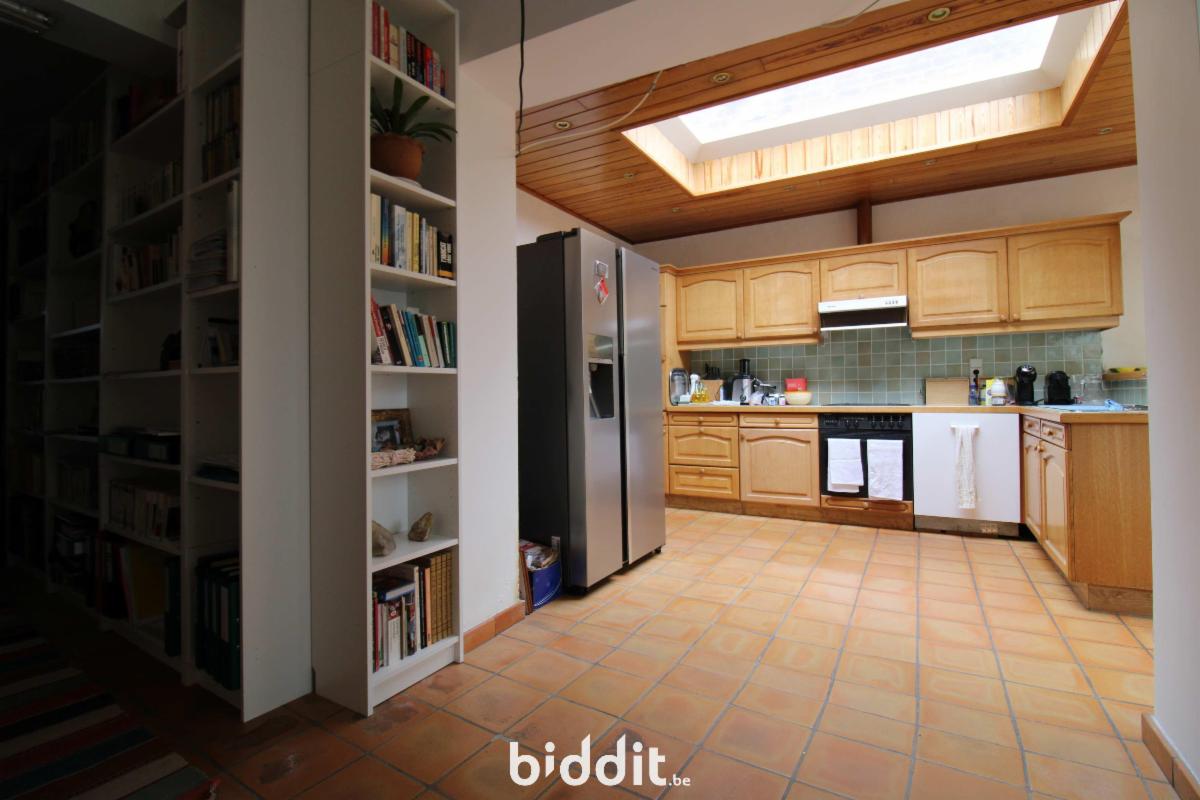 Nette ruime rijwoning nabij het centrum van Ninove (oppervlakte perceel 310 m²), en omvattende op het gelijkvloers: inkomhall, garage, bergruimte, toilet, kantoorruimte, keuken-eetkamer, woonkamer; op het 1e verdiep: hall, 3 ruime slaapkamers, badkamer; op het 2e verdiep: hall, 2 ruime slaapkamers en badkamer. Droge kelder en zolder. Tuin met tuinbergingen.