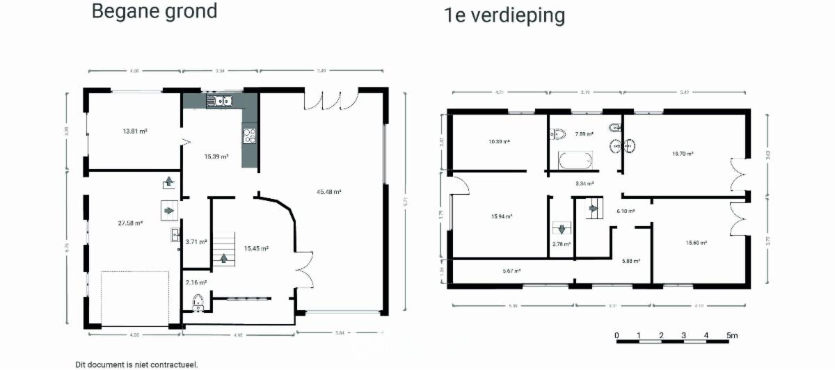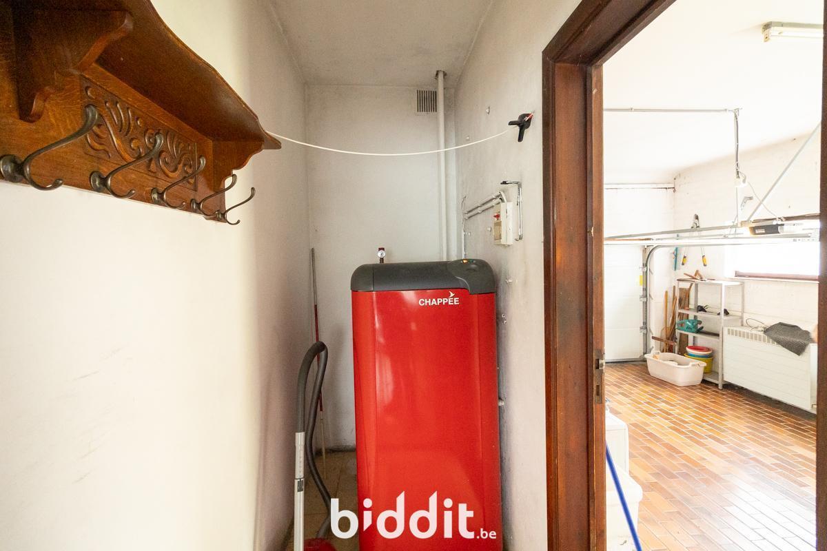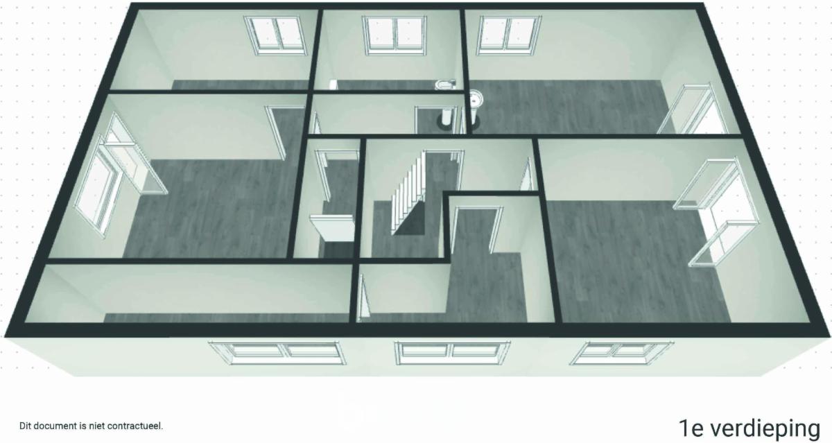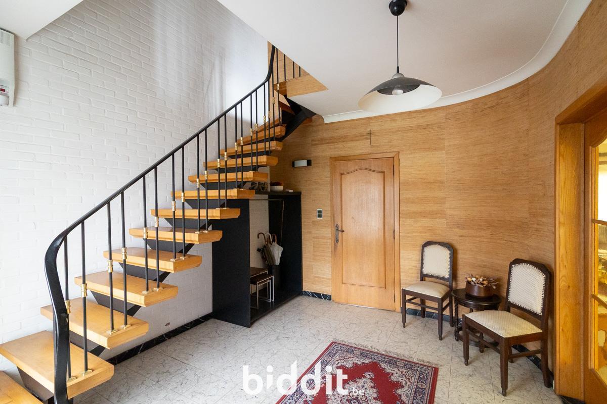 De woning bestaat uit een inkomhal met toegang tot de living, apart toilet, keuken, aparte eetruimte en de inpandige garage. Op de eerste verdieping bevinden zich de hal, 4 slaapkamers en de badkamer met toilet.