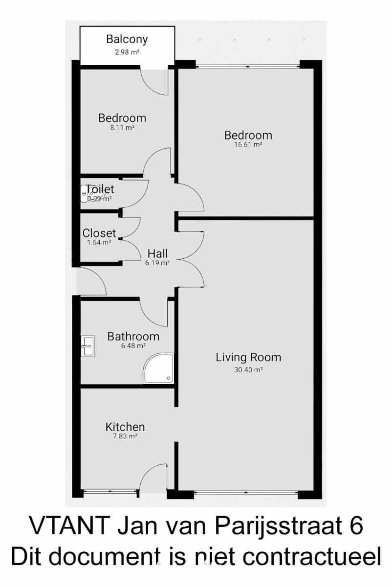 Bestaat uit: inkomhal met vestiaire, ruime woonruimte, (ingerichte) keuken, wc, badkamer, 2 slaapkamers waarvan een slaapkamer met terras.