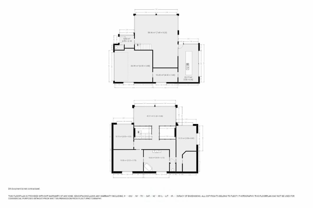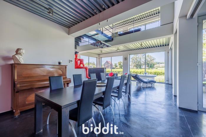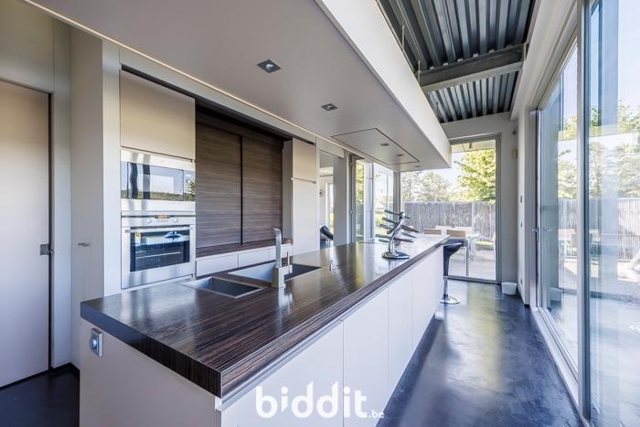 - gelijkvloers: inkom met wc, leefruimte, keuken, wasplaats, garage;