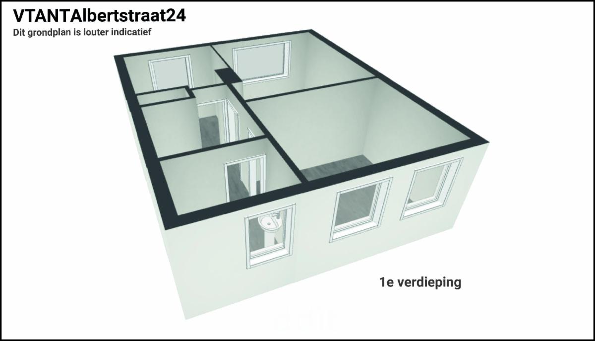 - 1e verdiep: hal, badkamer, 3 slaapkamers.