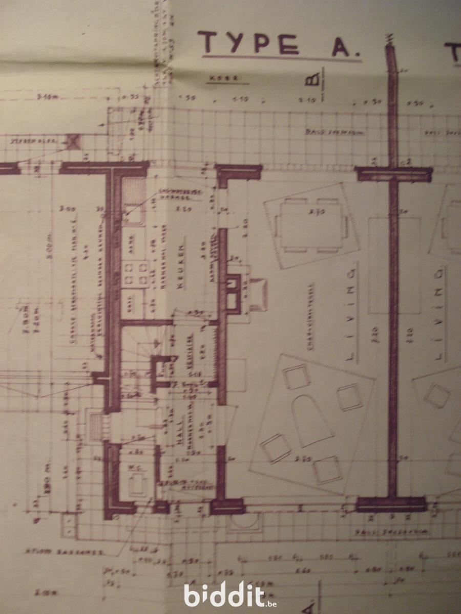 - Gelijkvloers: inkomhal, vestiaire, wc, living, keuken;