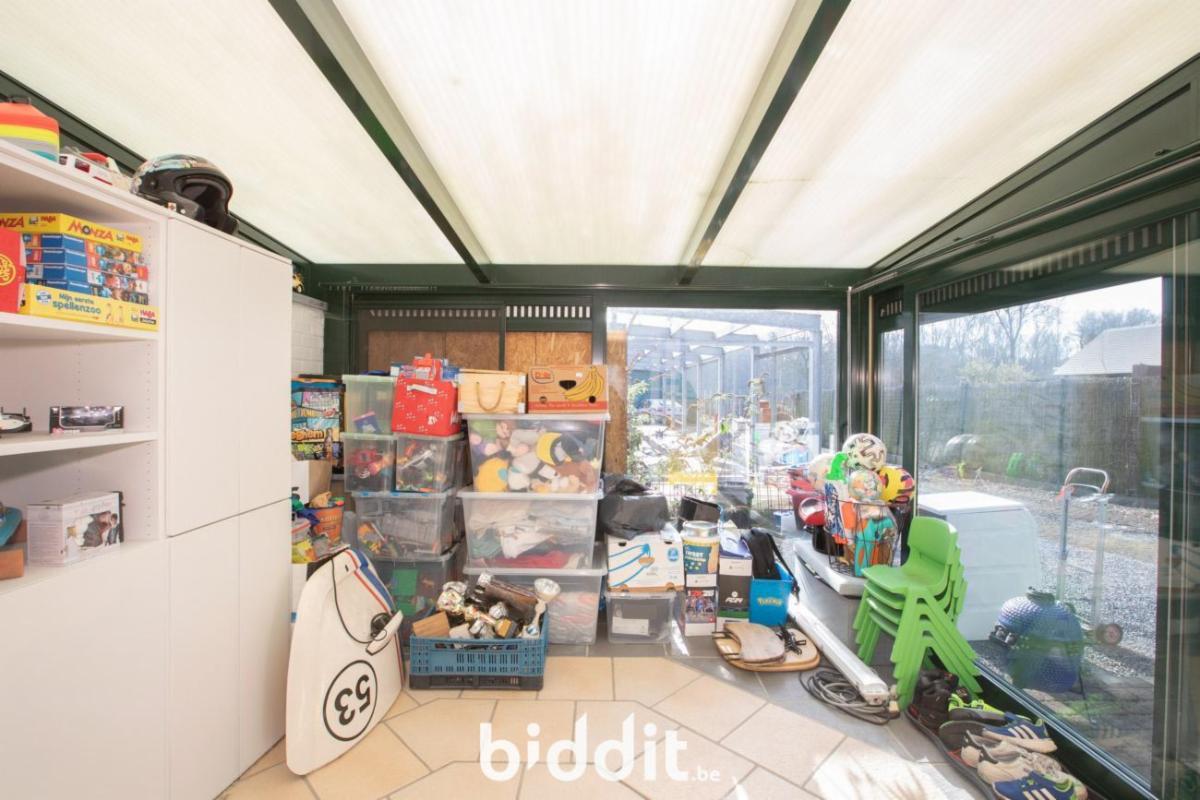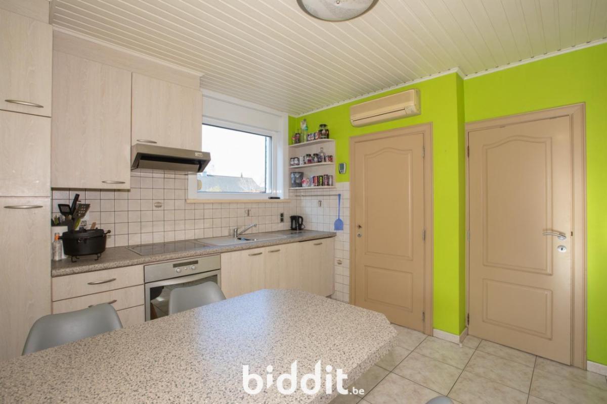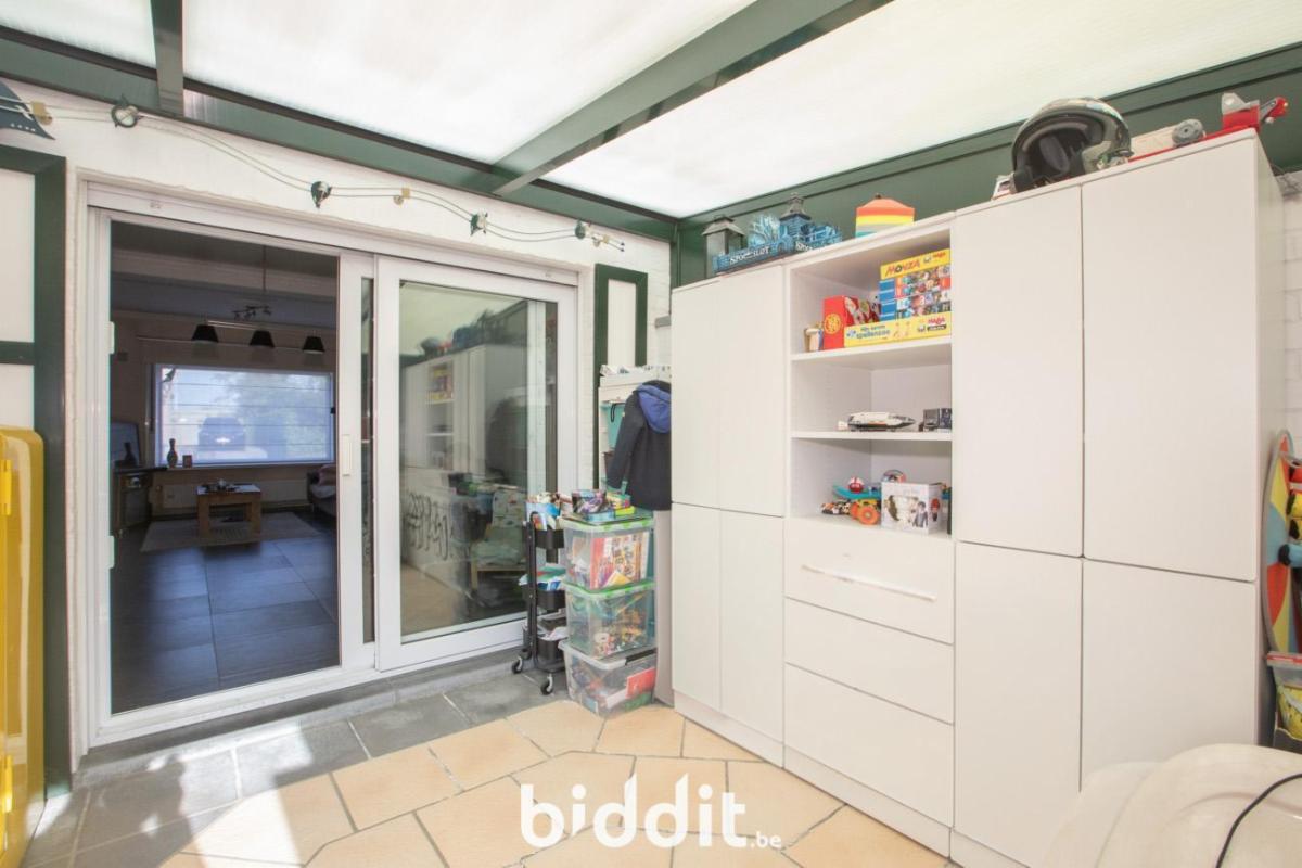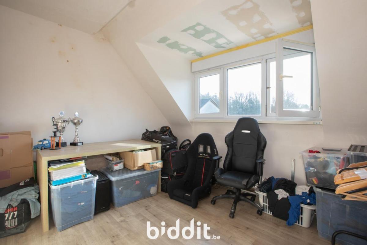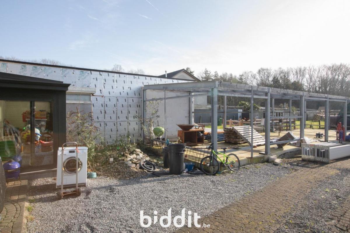 Halfopen woning. Vlakbij bos- en recreatiegebied Merkenveld. Bestaande uit een gelijkvloers: inkom, living-eetplaats, aparte keuken, veranda, badkamer en kelder. 1e verdiep: 3 slaapkamers en een bergplaats. Zolder in het dakverdiep. In de tuin is reeds een betonnen vloerplaat en staalstructuur voorzien voor de bouw van 2 garages, verder is er een ruimte koepelloods aanwezig. Volgende werkzaamheden werden recent uitgevoerd met bijstand architect: plaatsen regenwaterput, infiltratieput en septiek. G score: A P score: A