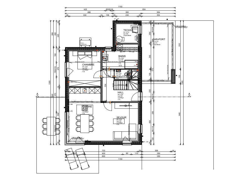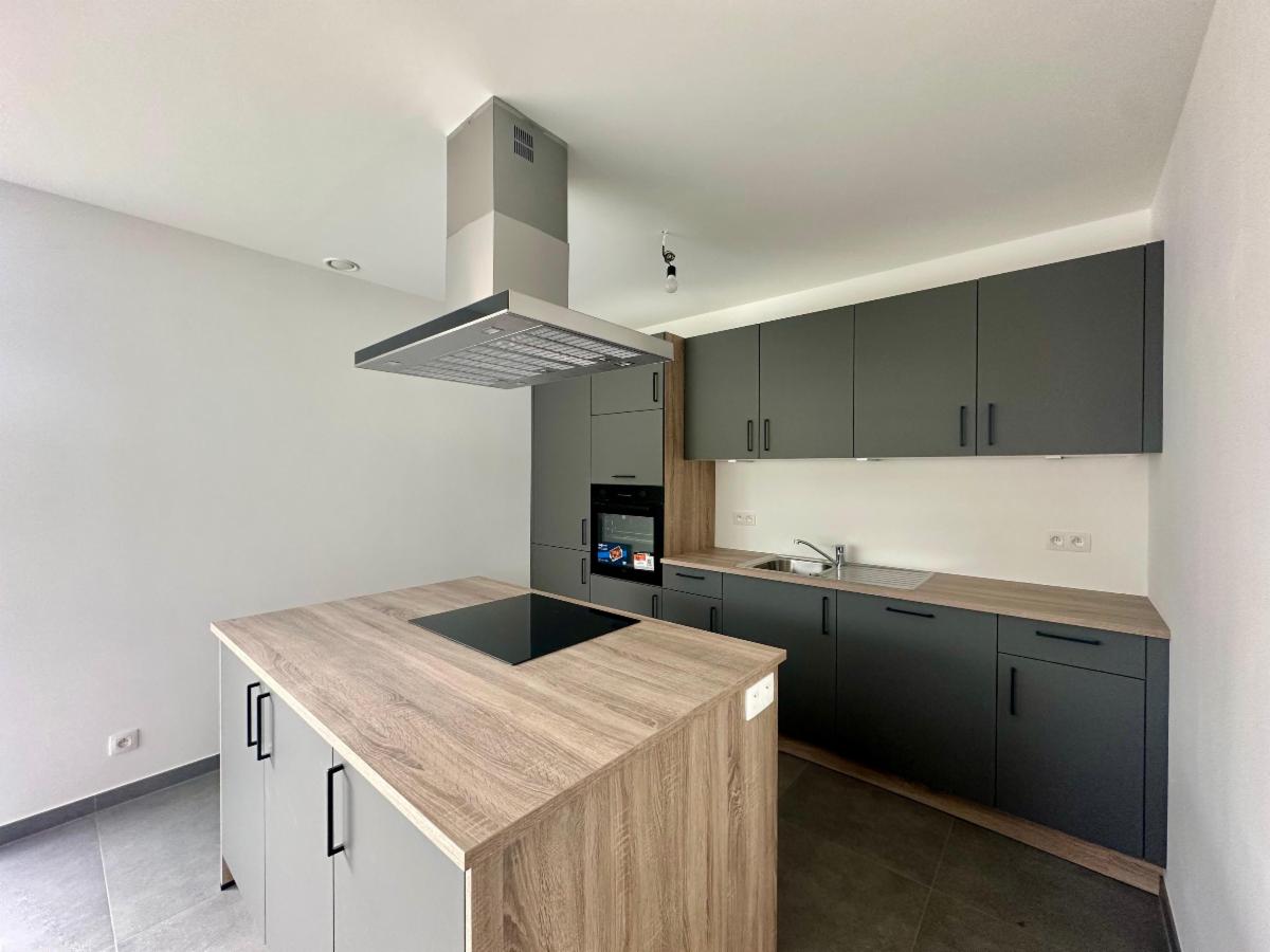 Le bien (LOT2) est composé comme suit : NIV 0 : hall d’entrée, WC avec lave-mains, carport pouvant accueillir un véhicule, superbe cuisine toute équipée avec ilot (évier, four, hotte, taque induction, frigo/congèle, emplacement micro-ondes), lumineux séjour donnant accès à la terrasse et au jardin orienté ouest, bureau ou chambre (12,21m²), buanderie(salle de douche possible) avec coin technique. NIV +1 : hall de nuit, 3 superbes chambres à coucher (14m², 12m², 19m²), une salle de bains (douche italienne, double vasque, WC).